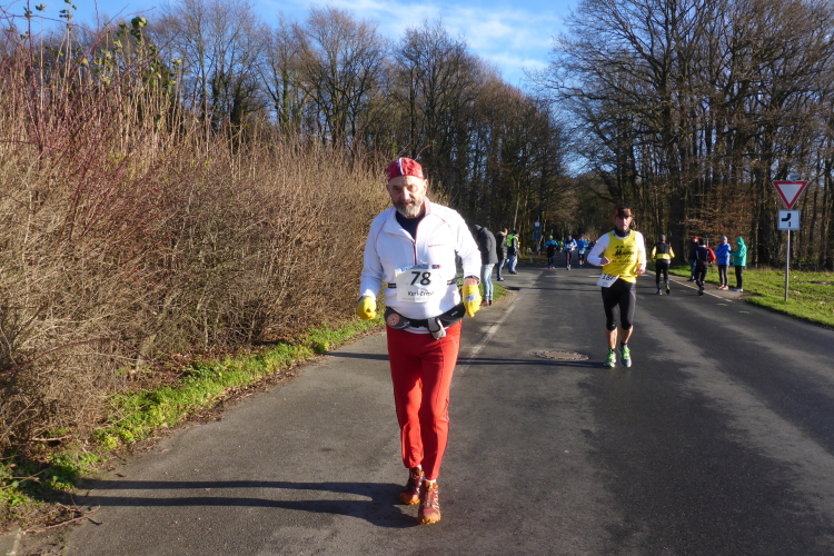 Der Wilhelm verstopft mit seinem Kameraden, wie es für Holländer üblich ist, die Laufstrecke auf der gesamten Breite. Nicht schlimm, ich bin schlank, ziehe mit Höllenspeed vorbei. Wilhelm ist ein Klassiker, hat über 1400 Marathon/Ultras in den Beinen. Réné, Jahrgang 1972, hat über Tausend, Keule knapp drunter, Klaus Peter kommt auf 600. Sigrid natürlich, hält weiter ihren Weltrekord, sie kämpft aber sichtlich.