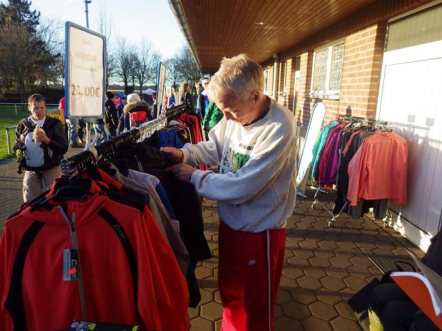 Erstmals stellen die Radsportler der DJK Twisteden die Streckenposten. Das werden sie blendend machen, allerdings fehlt dieses Jahr der Jenever. Im Festzelt ist es mir zu stickig, es sind zuviele Menschen dort, ich muss mich konzentrieren. Draußen ist es mir zu kalt, der norddeutsche Wind ist unangenehm. Der strahlend blaue Himmel kommt unerwartet, auf der Autobahn hat es noch heftig geregnet. Ich habe tatsächlich nachgedacht, umzudrehen. Nun blendet die Sonne frühlingshaft, verheißt einen goldigen Lauf.