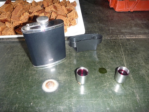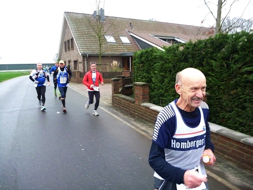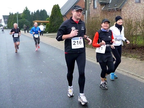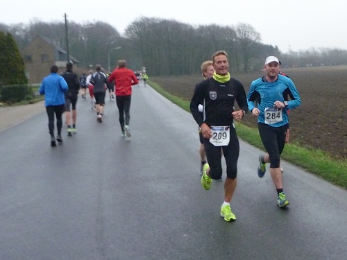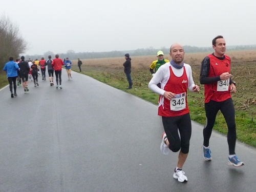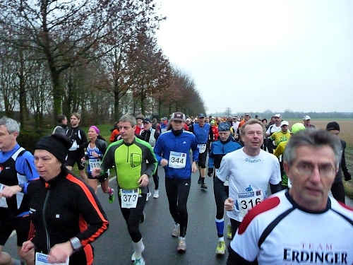 Keine Pfütze verlängert die Laufstrecke. Keine Nahstelle ist im Asphalt zu entdecken, aber am Verpflegungspunkt -wie immer- der Flachmann mit dem Kirschschnaps: “Der Dirk war auch schon dran!“ ruft mir jemand der gutgelaunten Helfern zu. “Ist doch besser als in der Wüste, oder?” “ Jooo”, sag ich, mehr nicht, ich muss ja an Werner dranbleiben.