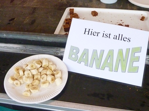 An der Verpflegungsstation im Start/Ziel Bereich kann man seine Eigenverpflegung deponieren. Brauche ich nicht, ich freue mich auf den Honigkuchen. Einmal im Jahr bekomme ich diese Köstlichkeit - und zwar nur hier. Eine perfekte Laufverpflegung, die Gewürze sind gut für den Magen. Das Cafè Platzer versorgt uns damit, hat 12 verschiedene Sorten im Angebot. Mindestens 50 % Honig muss drin sein, Eier, Orangen, Zitronat, Gewürze und Triebmittel. Triebmittel brauche ich auch nicht, habe ich selbst genug. Aber deswegen grinsen wir Läufer nicht wie Honigkuchenpferdchen. Es scheint eher am fehlenden Zeitlimit zu liegen.