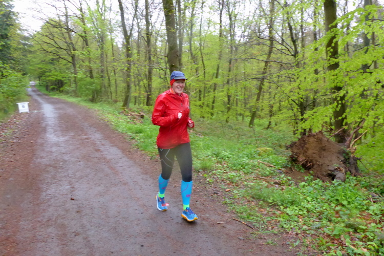 Man muss in diesem grünen Irrwald genau hinsehen: Immer wieder passieren wir verwitterte Basaltkegel und –ströme. Bei Kilometer 16/35 führt unsere Laufstrecke durch ein grün bemoostes Gebiet, das aussieht wie das Schlachtfeld von Verdun. Wir sind auf dem Kottenheimer Winfeld, einem Basaltbergwerk aus dem 19. Jahrhundert. Die tiefgrünen Mauern links und rechts markieren die Strecke der einstigen Transportbahn von 1859, die direkte Verbindung zur Rheinschiene hatte.