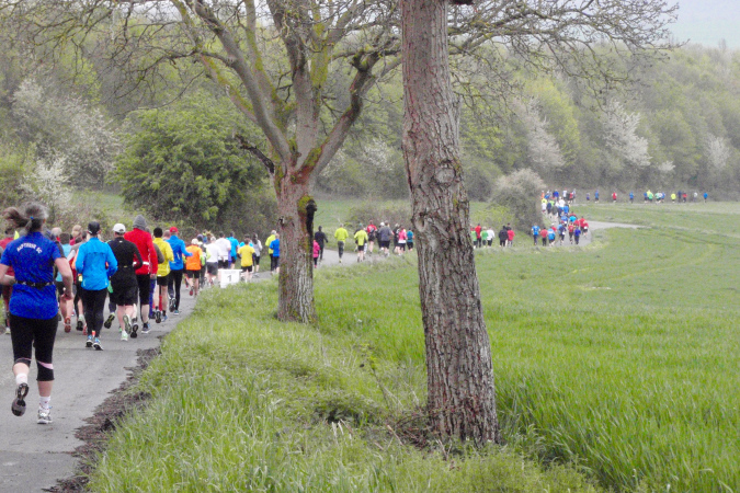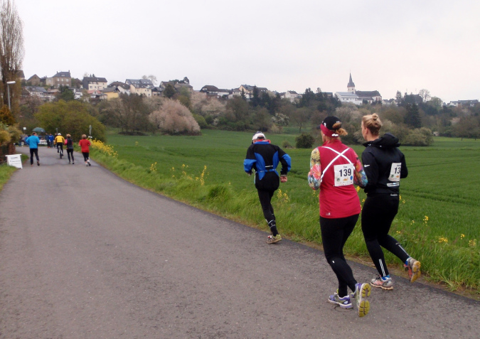Der Halbmarathon ist allerdings, was auch schon an der Internetadresse zu merken ist, der Hauptlauf – auch wenn der 10-km-Lauf inzwischen noch mehr Zulauf findet. Übrigens ist auch er ein sehr schöner, für die 10-Kilometer-Distanz ziemlich anspruchsvoller Landschaftslauf. Er ist mit dem ersten Teil des Halbmarathons bis auf eine 1,5 km lange Pendelstrecke identisch, führt also auch ziemlich steil an den Hängen des Hochsteins hinauf und bietet beim Abstieg denselben großartigen Höhepunkt des Bergablaufs auf Obermendig zu. Positiv ist für den Marathon festzustellen, dass sich 2016 die Finisherzahl von 66 auf 88 erhöht hat – ein interessanter Trend. Während die Citymarathons bei gleichzeitigem Halbmarathonangebot zunehmend um ausreichend hohe Teilnehmerzahlen kämpfen müssen, nehmen hier die Teilnehmerzahlen (wenn auch auf niedrigem Niveau) zu.