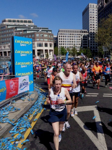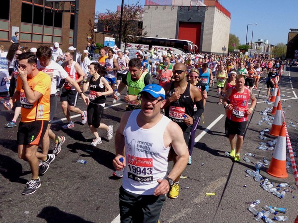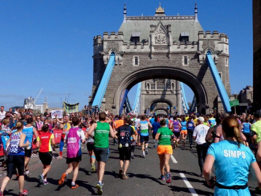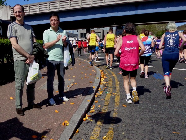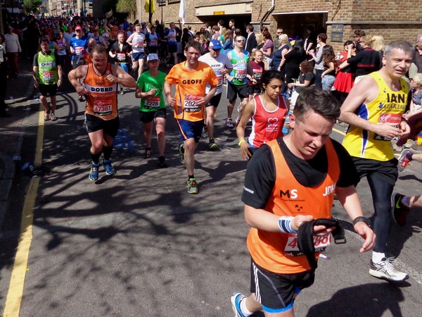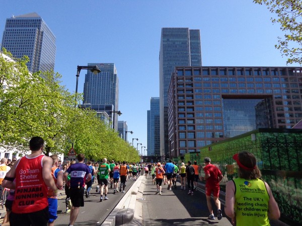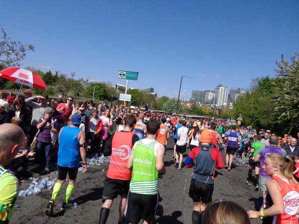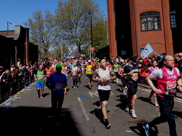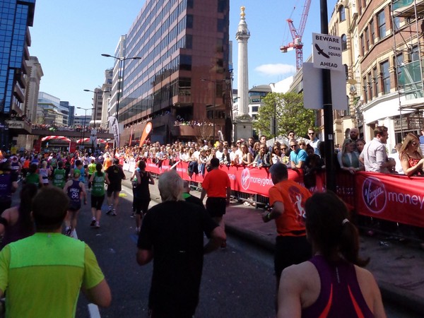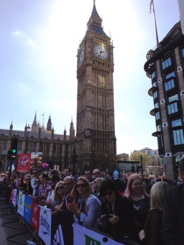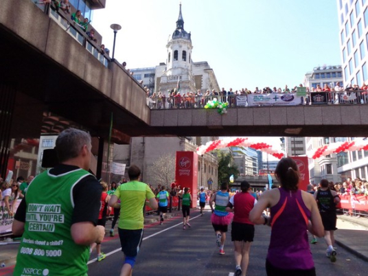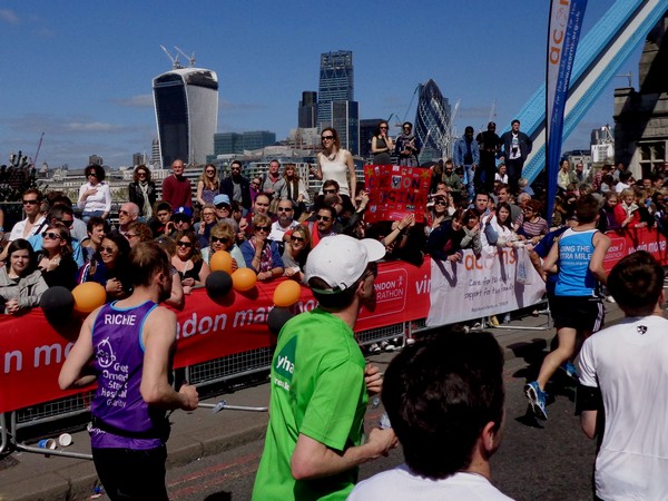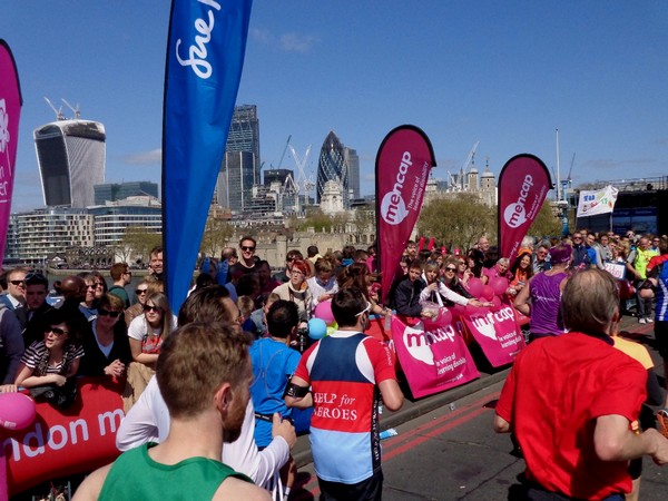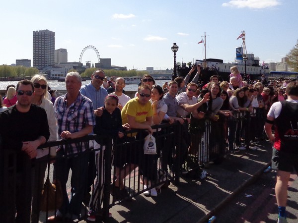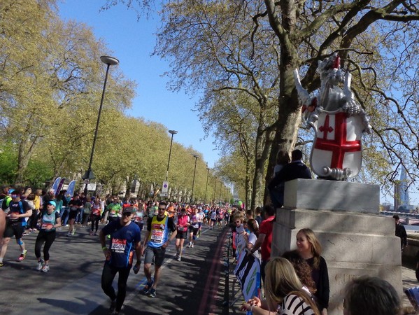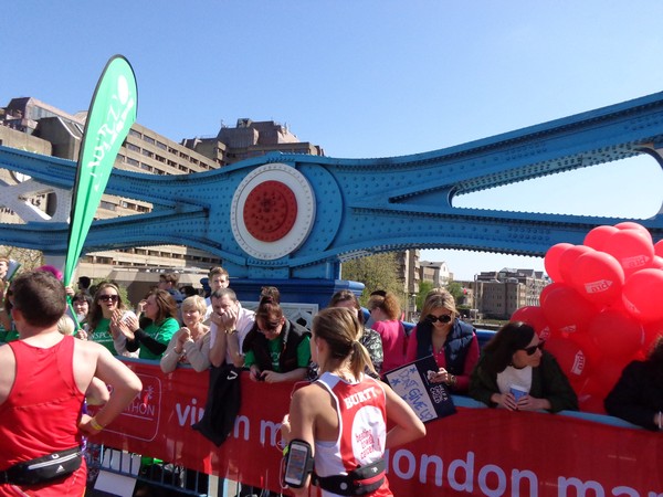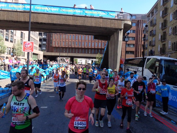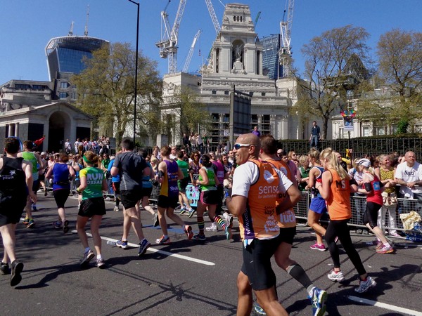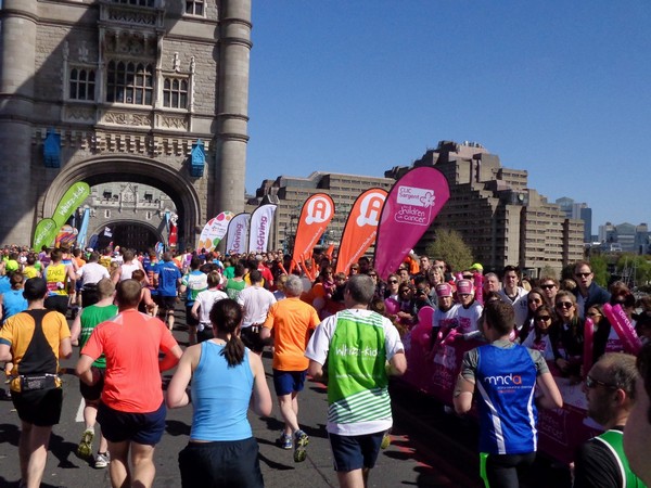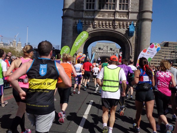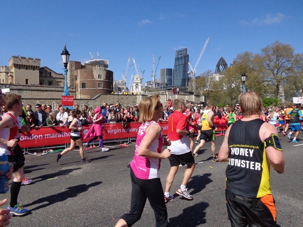 Der Favorit der Engländer, Mo Farrah, wurde bei seinem Marathondebüt in respektablen 2h08'21 achter. Die zweitbeste, je von einem Engländer gelaufene Marathonzeit. Zu wenig, für die Erwartungen an den Weltmeister und Olympiasieger über 5.000m und 10.000m. Man richtete ihm aus, er solle auf der Bahn bleiben, Marathon könne er nicht. Aus der Anfeuerung „Go Mo“ wurde „slow Mo“! Was sagt man dazu? Sieger in der Streckenrekordzeit von 2h04'27: Wilson Kipsang. Als der ins Ziel lief, war ich gerade auf der Tower Bridge!