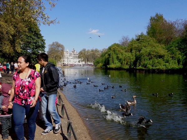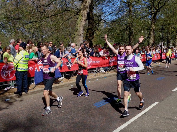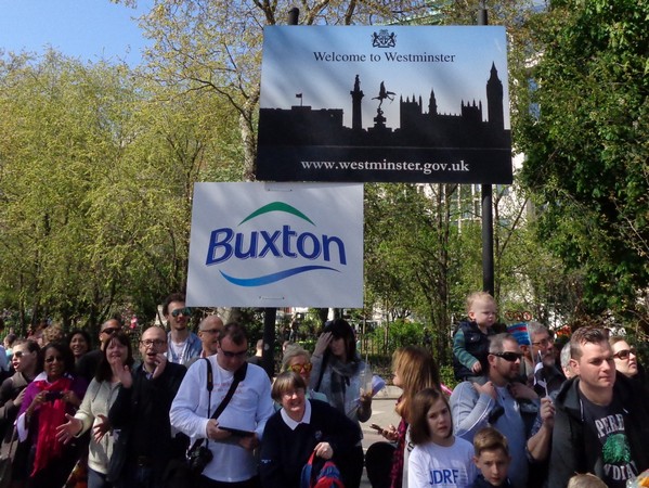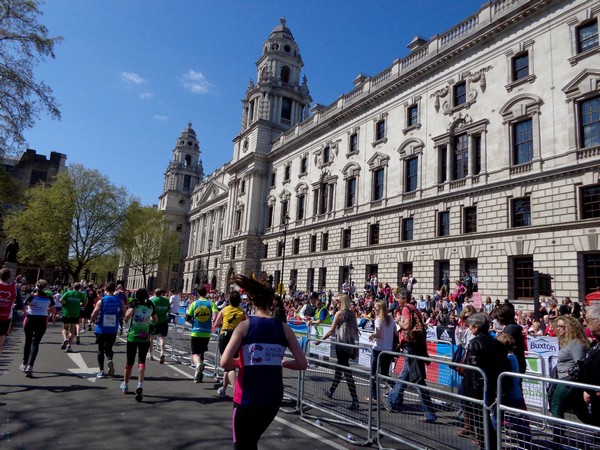 Am Weg durch den Park zum Hotel treffe ich auf Evi. Wir überqueren den Birdcage Walk wenige 100m vor dem Ziel nach der Schleusenmethode. Auch um diese Zeit, nach etwa fünfeinhalb Stunden reißt der Läuferstrom nicht ab.