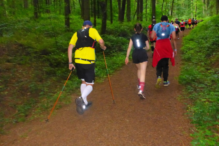 Der Erste Lauf, der T11 startet um 18 Uhr. Claudia und Friedhelm werden ebenfalls alle 3 Läufe bestreiten. Beim kurzen Briefing erklärt Swen Keller die Streckenmarkierungen und gibt Tipps. Der Start rückt näher. Es wird heruntergezählt, pünktlich laufen wir los.