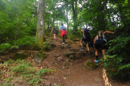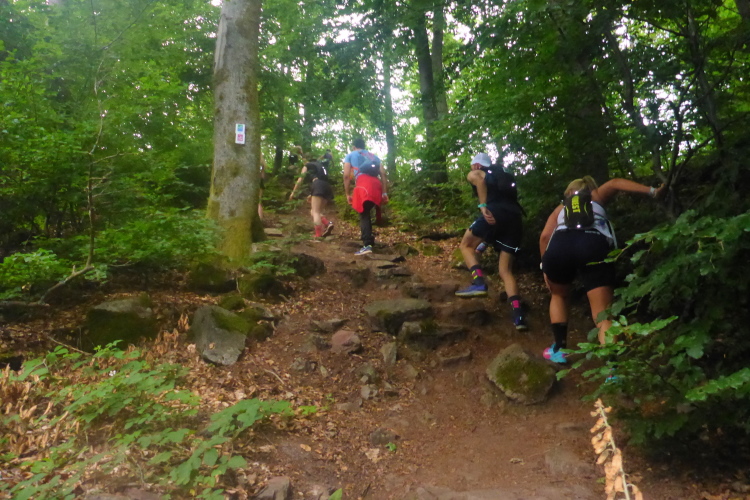 Das war ein schönes Urlaubswochenende ganz nach unserem Geschmack. Die Trails sind knackig, teilweise steinig und verblockt, aber machbar. Die Streckenmarkierung ist perfekt, das Flatterband nicht nur an Abzweigen, sondern in guten Abständen angebracht, so dass keine Unsicherheit aufkommt. An Kreuzungen sind nicht nur Pfeile für den richtigen Weg, sondern Striche dort, wo man nicht laufen soll. Jeder Tag wurde neu markiert, so dass auch Starkregen in der Nacht nichts ausgemacht hat.