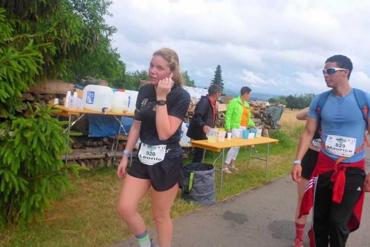 Ich habe von der vorigen VP ein Stück Honigkuchen. Bier und Honigkuchen, das ist ein angemessenes Abschiedsessen. Schließlich sind es keine 10 Kilometer mehr. Während sich die Anderen noch stärken, mach ich mich schon mal vom Acker. Louis hängt sich gleich an.