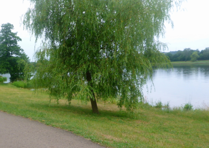 Endlich erreiche ich den Park. Höre ich nicht schon die Lautsprecheransagen? Zwischen Spaziergängern verfolge ich die Pfeile, die mich erneut auf einen schmalen Pfad führen. Ich hoffe, das ist die letzte Steigung. Im Wald ist es traumhaft schön, die Abendstimmung macht eine romantische Stimmung. Endlich wird es flach, ich mache nochmal Tempo. Bergab lande ich auf dem Spazierweg, hier muss ich rechts und sofort links.