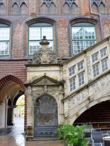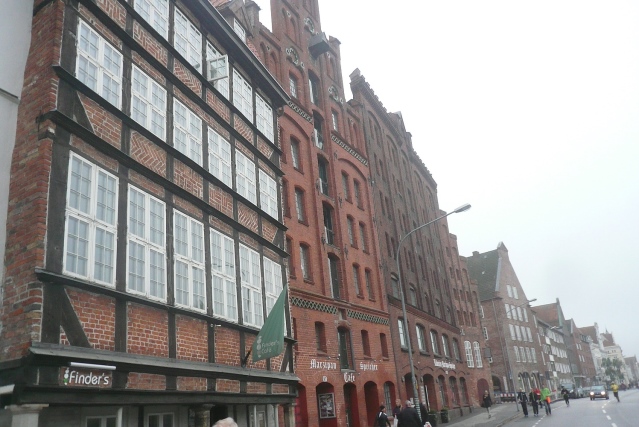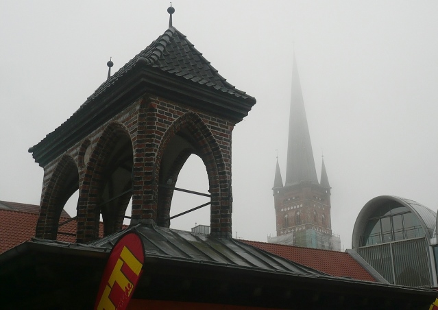 Bei meiner Erkundung spielt leider Petrus nicht mit. Immerhin hat sich das Wetter ein wenig gebessert. Statt Dauerregen am Vortag bei meiner Ankunft nieselt es die meiste Zeit und Sicht haben wir nur sehr eingeschränkt. Die Wolkendecke liegt fast am Boden, die höchsten Türme stecken im Grau. Ein wenig Übersicht verschaffe ich mir vom 50 Meter hohen Turm der St. Petri-Kirche. Viele Gänge führen in der Altstadt in Höfe und zu Hinterhäusern. Besichtigen könnte man das Buddenbrookhaus. Thomas Mann beschreibt in seinem Roman „Die Buddenbrooks“ den Verfall einer Lübecker Kaufmannsfamilie, dafür erhielt er den Nobelpreis für Literatur.
