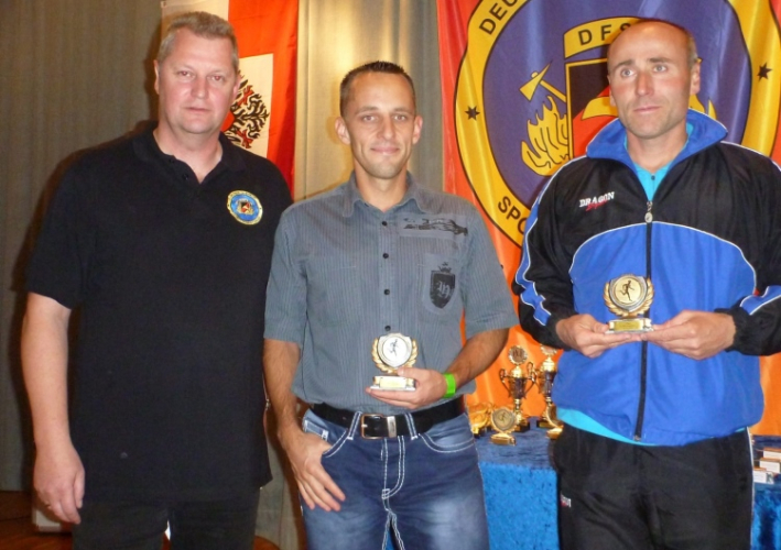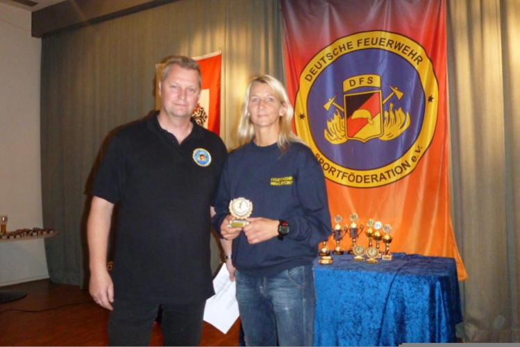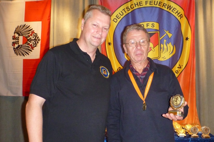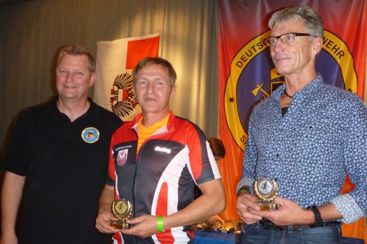 Die Siegerehrung findet in der Handwerkskammer statt. Die Lübecker haben den Saal gut hergerichtet. Ein Buffet, Getränke und gute Gespräche verkürzen die Zeit bis zur Siegerehrung. Nicht auf Rang drei, nicht auf zwei, sondern auf eins der Klasse M55 werde ich auf die Bühne gerufen. Eine Top-Platzierung war mein Ziel heute und dass der Sieg in der Altersklasse herausgesprungen ist, war nicht unbedingt erwartet. Und von meiner Zeit bin ich total überrascht. Wo in zwei Jahren die nächste Feuerwehrmeisterschaft stattfindet, ist noch nicht geklärt. Aber sicher ist es, dass ich als Titelverteidiger an den Start gehen werde.