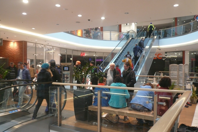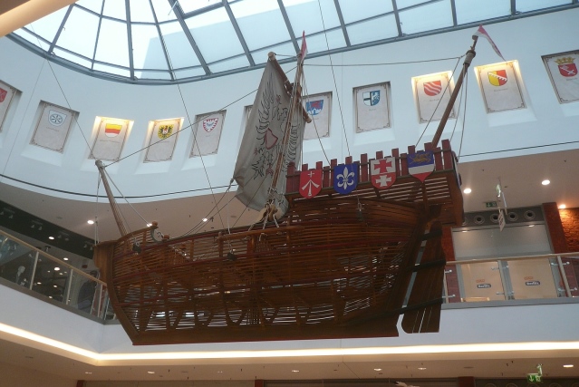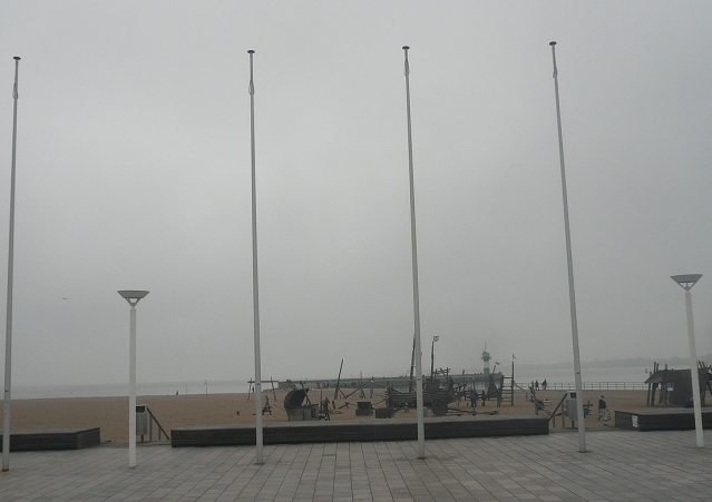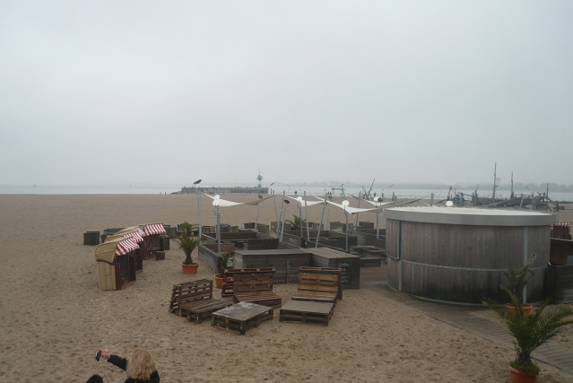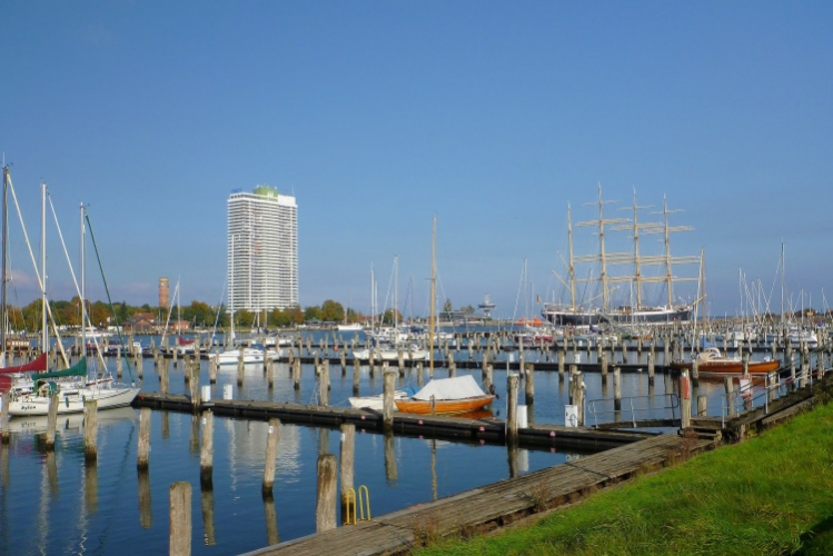 Gleich daneben befindet sich das höchste Gebäude in Schleswig-Holstein, das 119 Meter hohe Maritim-Hotel, das in den 70er Jahren errichtet wurde. Die Spitze des Hotels steckt im Hochnebel. Oder sind es die Wolken?