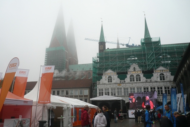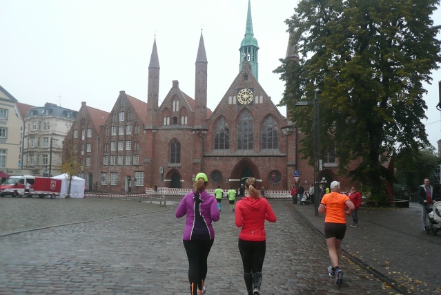 Am Vortag des Rennens besichtige ich die Altstadt. Lübeck nennt man die Stadt der Sieben Türme, die sich auf fünf Hauptkirchen aufteilen: Dies sind neben dem Dom die 125 Meter hohe St. Marienkirche, die St. Jakobi-, St. Aegidien- und Petri-Kirche. Zu den über 1000 besonders sehenswerten Gebäuden gehören das Rathaus, Burgkloster, Koberg, das Holsten- und Kaisertor und der Salzspeicher. Die ganze Altstadt steht in der Liste des UNESCO Weltkulturerbes.