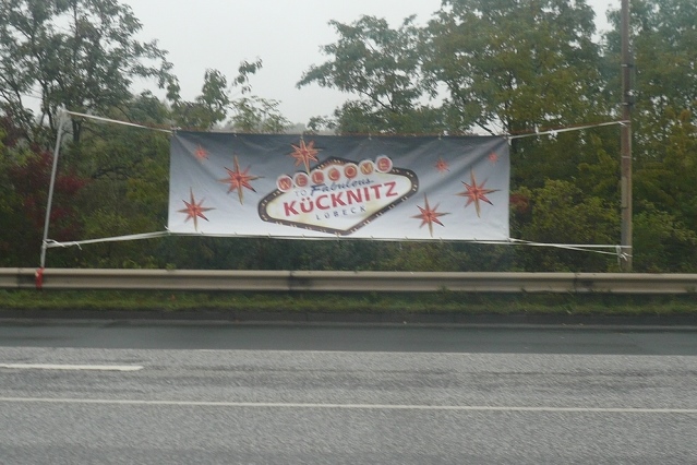 Gleich hinter dem Tunnel führt auf dem Kieselgrund, eine Ortsstraße parallel zur B 75 in den Ort Kücknitz, dem neunten Stadtteil von Lübeck mit rund 18000 Einwohnern. Einige der Anwohner stehen am Rand der Strecke und feuern uns an. Ich mache mir den Spaß und grüße landesüblich mit „moin, moin“, es wird artig geantwortet. So habe ich es gern.