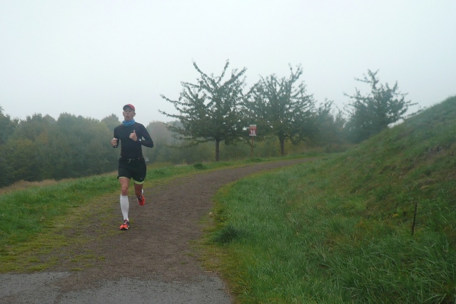 Einige Kilometer laufen wir auf der für uns abgesperrten Autostraße. Mir fällt auf, dass alle 200 bis 300 Meter ein Helfer am Rand steht. Die beobachten uns, feuern uns beim Vorbeilaufen an und sind jederzeit in der Lage, im Bedarfsfalle Hilfe anzubieten oder herbeizurufen. So eine Streckenüberwachung, ich meine das überhaupt nicht negativ, habe ich noch nie erlebt. Es passt ins Bild, dass jeder Kilometer markiert ist, und dass jede Verpflegungsstelle vorangekündigt ist. Alle drei Kilometer können wir auftanken: Wasser, Iso, Obst, Riegel und warmer Tee steht im Angebot. Und die Tanken sind personell gut aufgestellt, selbst kleine „Pimpfe“ mit vier, fünf Jahren halten dir den Becher hin und wollen auf der anderen Hand abgeklatscht werden.