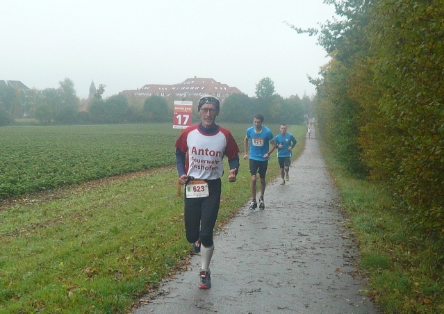 Ich verbleibe nur kurz zum Verpflegen im Zielbereich, dann verschwinde ich im Einkaufszentrum, nur nicht einen Infekt riskieren. Trocken gelegt gehe ich nach 20 Minuten wieder in den Verpflegungsbereich und beobachte die Szenerie. Es dauert nicht lange, dann hängt bereits die erste Ergebnisliste aus. Ich finde mich auf Platz 33 der Gesamtwertung bei den Männern und auf Rang 2 in der Klasse M55. Als ich vor mir platzierten Feuerwehrkameraden zähle, bringe ich vier zusammen. Ich müsste also der fünftschnellste Floriansjünger Deutschlands sein. Und in der Klasse könnte es sogar zum Sieg gereicht haben. Für eine Massage ist im Zielbereich gesorgt, das Zentralbad zum Duschen und Umziehen ist nur fünf Gehminuten entfernt.