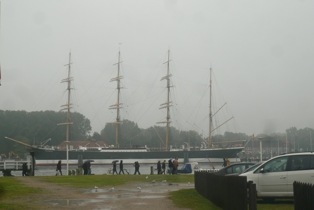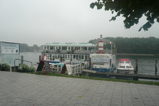 In Travemünde bleiben wir hart am Ufer, ein Abstecher in den Ortskern bleibt uns verwehrt. An der Priwall-Fähre stehen einige Zuschauer und feuern uns an. Wer mittels der Fähre auf die Halbinsel Priwall übersetzt, könnte das Segelschiff Pamir anschauen. Wenn es mit ausgeht, möchte ich das am nächsten Tag nachholen. Im Bereich des Schiffes hat vor wenigen Tagen eine große Baumaßnahme begonnen. Ein dänischer Investor wird das Gelände mit Wohnungen, Geschäften und dergleichen bebauen. Die Grundsteinlegung fand vor wenigen Tagen statt.