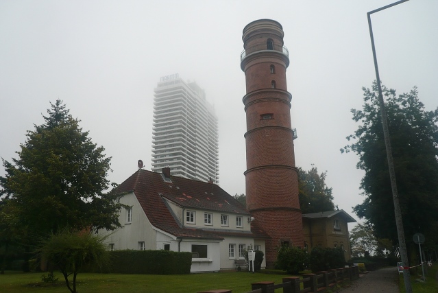 Auf Höhe der Pamir biegt unser Kurs von der Trelleborgallee ab, wir laufen zum 31 Meter hohen Alten Leuchtturm, der 1539 von holländischen Maurern erbaut wurde. Für die Seefahrt hat er längst keinen Zweck mehr, denn schon seit 1922 ist der Turm ein technisches Kulturdenkmal. Ein maritimes Museum für Leuchtfeuertechnik befindet sich heute darin.
