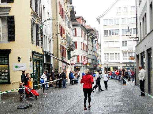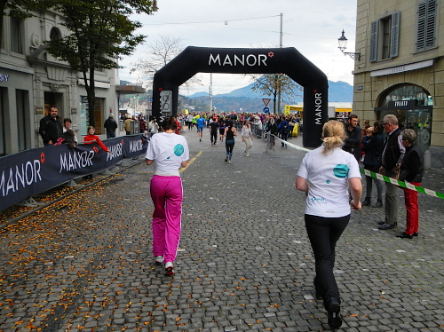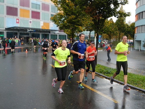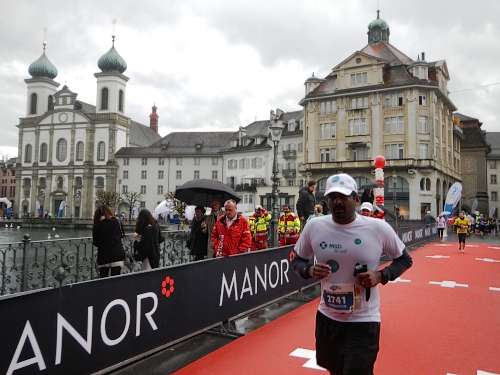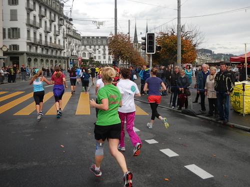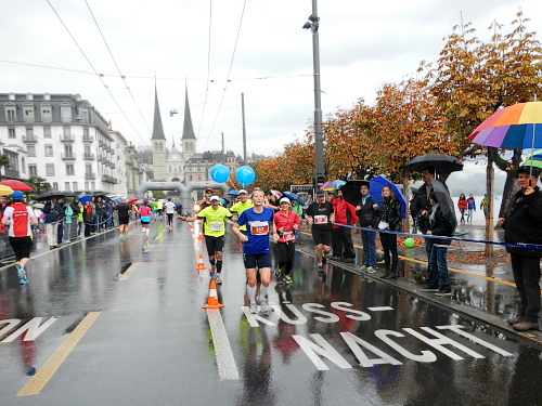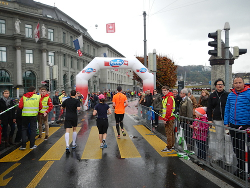Es gibt wenig Neues zu berichten, es ist wie bisher jedes Mal. Die Strecke ist so abwechslungsreich gegliedert, dass nie Langeweile aufkommen kann, die einzelnen Abschnitte folgen Schlag auf Schlag, dass keine Monotonie mentale Schwierigkeiten bereiten könnte. Das Publikum und die Musikgruppen sind zahlreich, die Streckensprecher am Schwanenplatz vor der und beim KKL nach der Seebrücke voll im Element, das Läuferfeld bunt und frohgemut und die Freiwilligen mit Engagement und Freundlichkeit dabei.