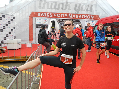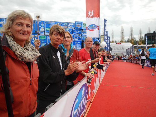 Und dann genieße ich den Zieleinlauf unter dem Portal hindurch in den Eingangsbereich des Verkehrshauses und in den Innenhof hinaus, wo es auf den roten Teppich geht. Zuschauer, dicht an dicht, und unermüdliche Cheerleaders tragen auf den letzten Metern jeden Ankömmling ins Ziel und viele ans Ziel ihrer Träume. Ich war mit einigen jüngeren Semestern auf ihrem ersten Marathon oder Halbmarathon unterwegs und freue mich mit Ihnen, wie sie die Medaille umgehängt bekommen und später das langärmlige Finishershirt entgegennehmen.