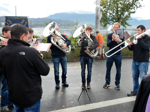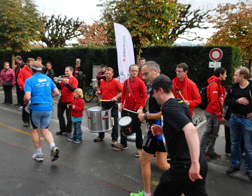 Seit Horw ist die Strecke wieder belebter, denn die Fünfmeiler leisten uns Gesellschaft. Eine Gruppe von Feuerwehrleuten ist auch dabei – in voller Ausrüstung mit Atemschutz  wohlverstanden. Da laufe ich eindeutig lieber fünfmal so weit, dafür ohne.