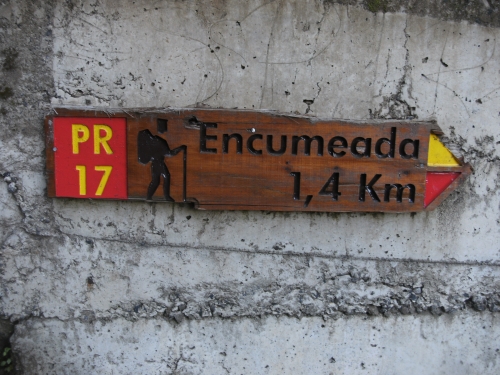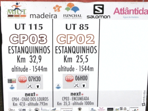 Vor einem Tunnel steht ein Schild: Encumeada 1,4 km. Na also, es geht doch voran. Nach dem Tunnel laufe ich weiter entlang der Levada bis zum CP. Unmittelbar vor dem Erreichen des Passes werden wir von der Levada links kurz hinauf geschickt und stehen dann vor dem Zelt des CP3.