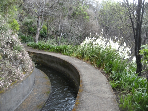 Es ist angenehm, entlang der Levada zu laufen. Meine Stimmung wird besser. Nach dem Erlebnis mit dem Zeitlimit in Estanquinhos war meine Stimmung doch etwas gedrückt. Aber der beginnende Tag mit der aufkommenden Helligkeit und der schöne Levadaweg lassen gute Laune in mir aufkommen.
