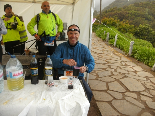 Ich bin froh, mich setzen zu können. Tasse raus und erst mal einen Kaffee trinken. Während ich so da sitze komme ich mit allen Helfern ins Gespräch. Man erkennt mich vom Fernsehinterview, es folgen unzählige Fragen. Eine nette Unterhaltung. Macht richtig Spaß, sich Zeit für solche Pausen zu nehmen und mit den Helfern in Kontakt zu kommen. Die Hilfsbereitschaft ist überwältigend. Nicht nur hier am CP in Encumeada werde ich wieder gefragt: „Klaus, möchtest Du noch etwas?“