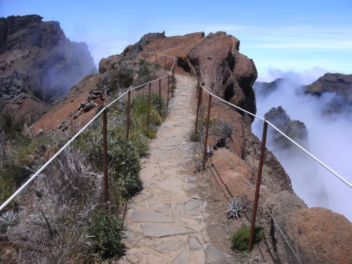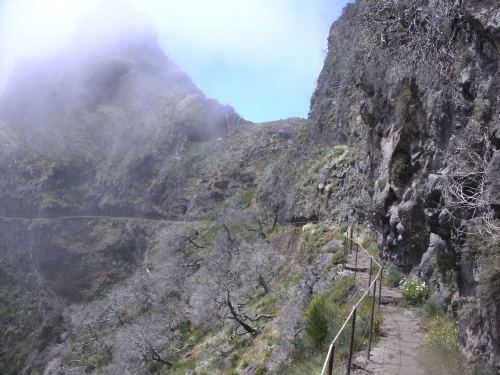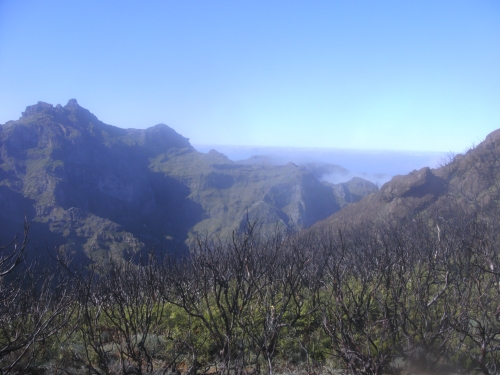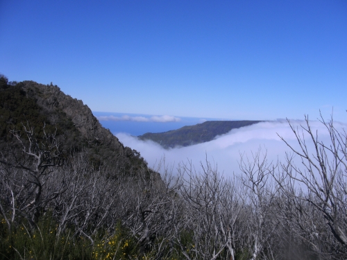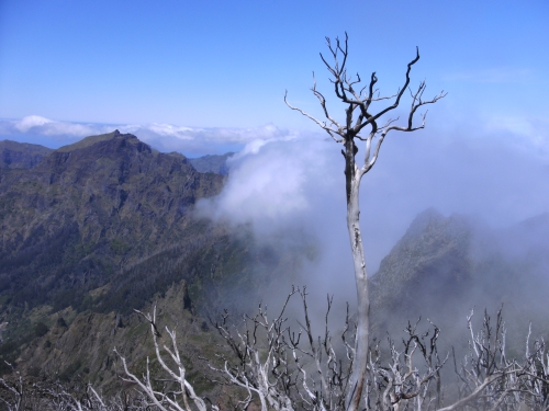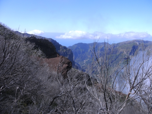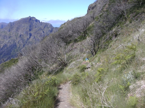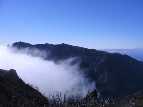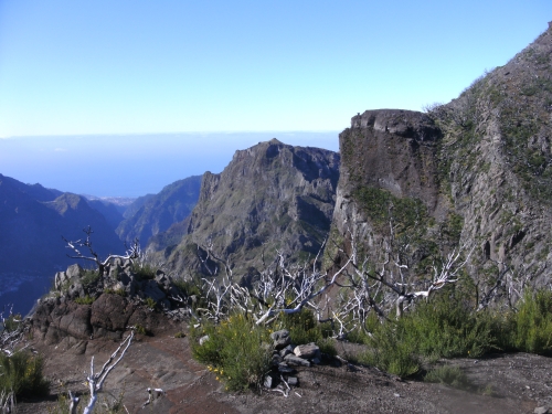 Noch rasch eine SMS an Doris, damit sie weiß, wo ich gerade bin: Auf dem schönsten Teil der Strecke. Schon im Jahr letzten war der Abschnitt zwischen dem Pico Ruivo und dem Pico Areeiro der Höhepunkt des Laufes. So ist es auch diesmal, auch bei umgekehrter Laufrichtung. Die Sonne bleibt und ich kann die Szenerie genießen.