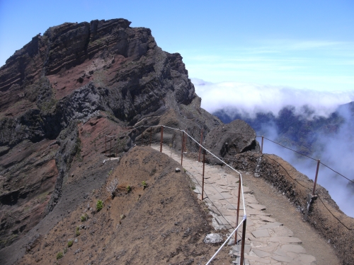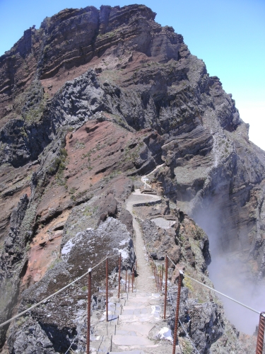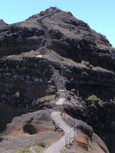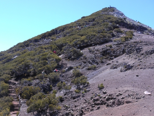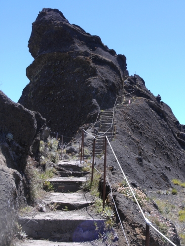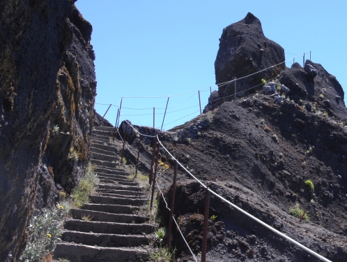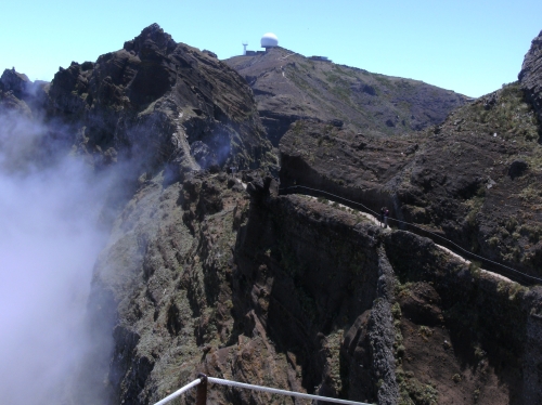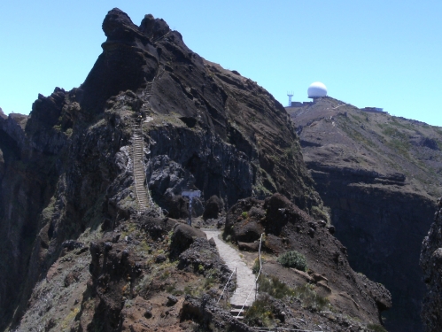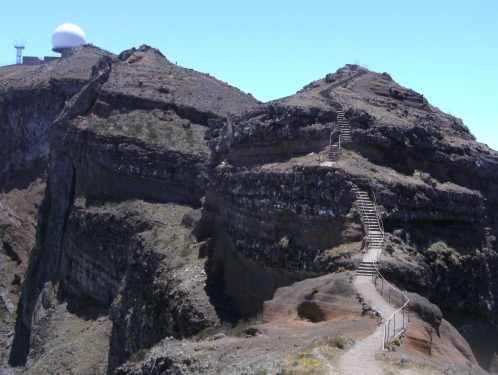 Nach einem Tunnel steht ein wahrlich imposanter Schlussanstieg zum Pico Areeiro an. Die markante Radarkuppel auf dem Gipfel kann man schon aus einiger Entfernung sehen.