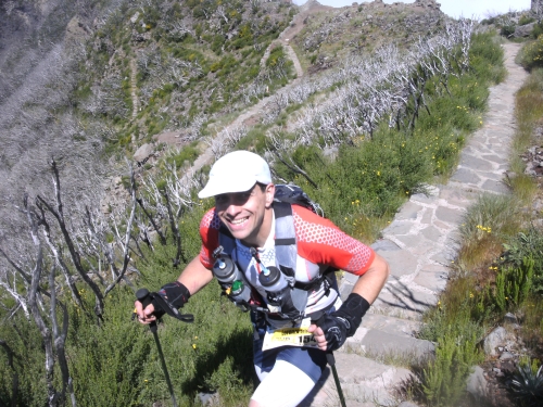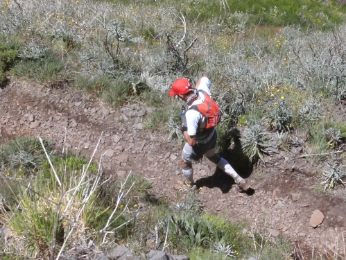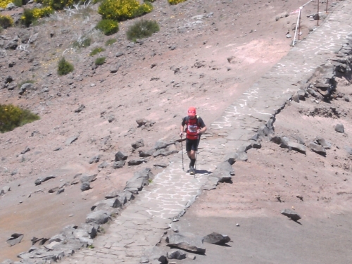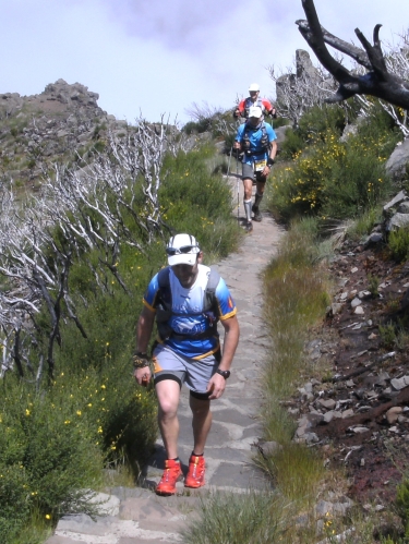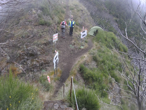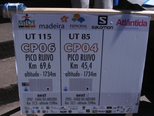Meine Müdigkeit vom Aufstieg zum Ruivo ist verflogen. Ich bin geradezu euphorisiert. Km 50 liegt hinter mir, auf dem Gipfel wird wieder die Startnummer notiert und es geht hinab. Vorbei am Startpunkt des letztjährigen 55er. Ein Blick auf meine Pulsuhr zeigt mir, dass ich schon gut 300 hm seit dem Areeiro verloren habe. Ist richtig anstrengend dieses steile Bergab. Aber da gibt es ja die Gegenanstiege.