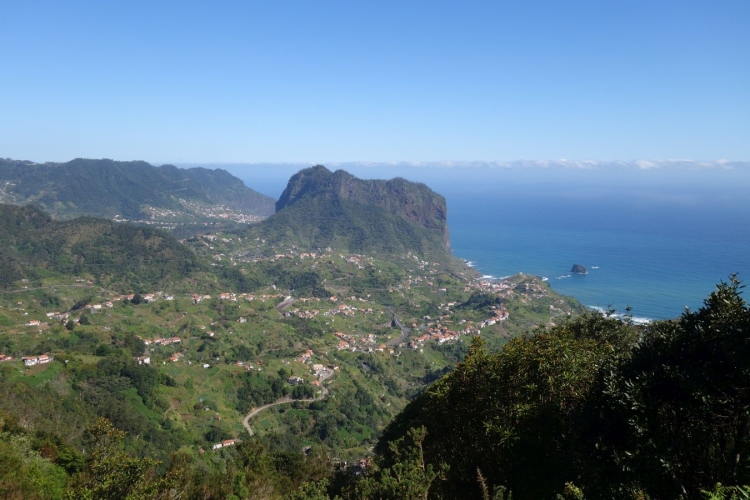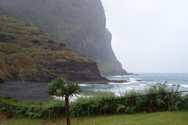 Die Passhöhe der Boca do Risco mit ihren 360 m Höhe ist der höchste Punkt der Strecke. Ich werfe einen letzten Blick zurück auf die steile Nordküste und stürze mich in den Abstieg.