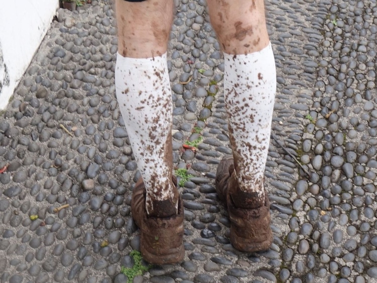 Die Passage direkt unterhalb der markanten Steilfelsen am Meer ist beeindruckend. Und sehr matschig. Es gibt doch tasächlich etliche Läufer die versuchen hier ohne Matschkontakt durch zu kommen. Alte Trailhasen laufen einfach geradeaus. Matsch kriegt man so oder so genug ab.