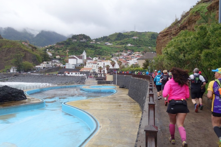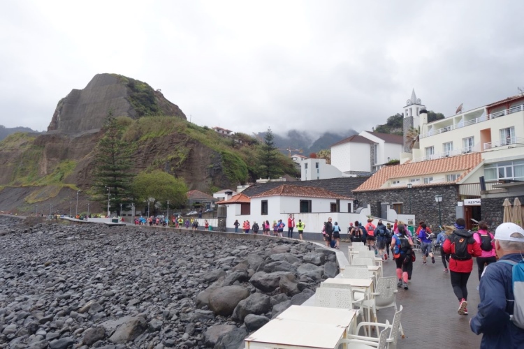 Ich besteige den Bus, der Start des Mini ist um 9 Uht in Porto da Cruz. Die Strecke ist mir von meinen Wanderungen auf der Insel und den bisherigen Läufen beim MIUT bestens bekannt. Sie führt von Porto da Cruz hinauf nach Larano und entlang der spektakulären Nordküste bis zur Boca da Risco und von dort nach Machico.