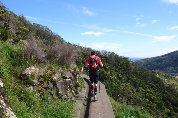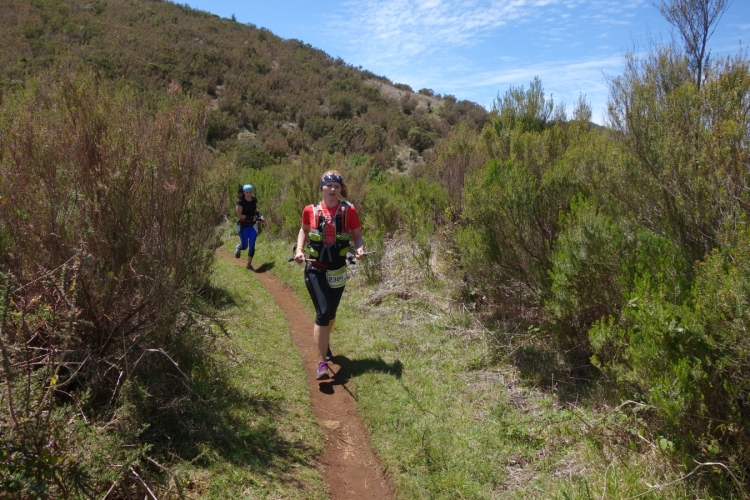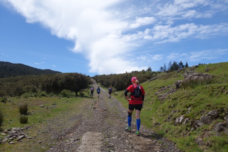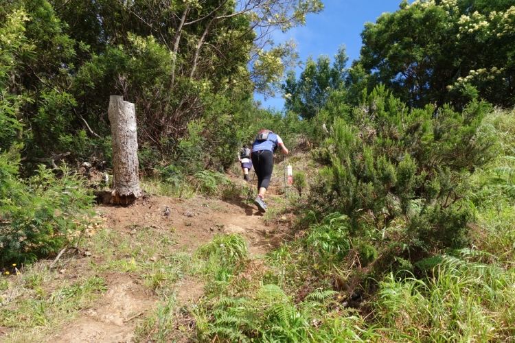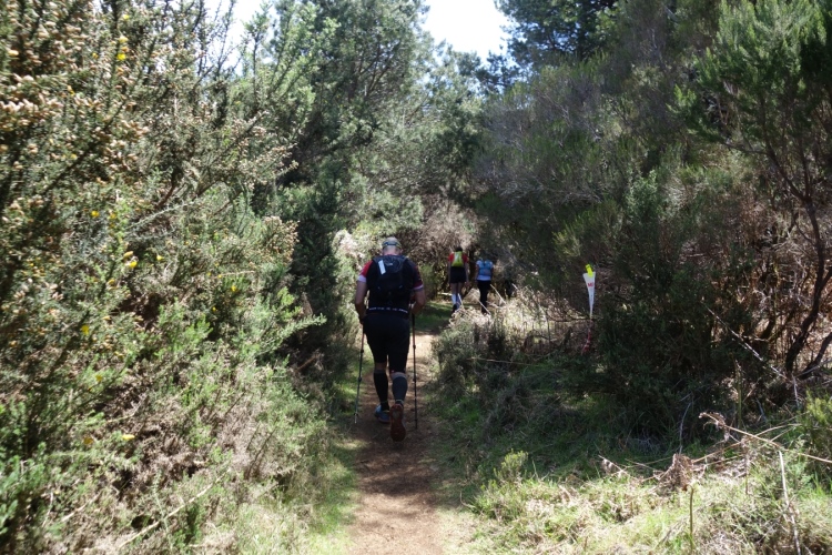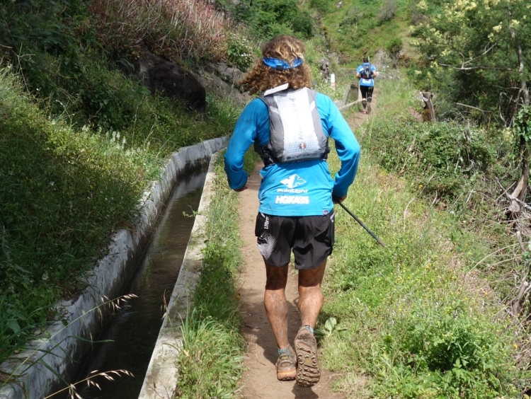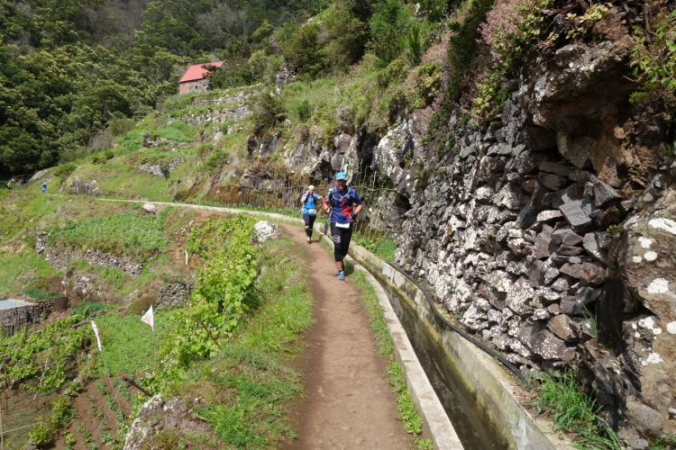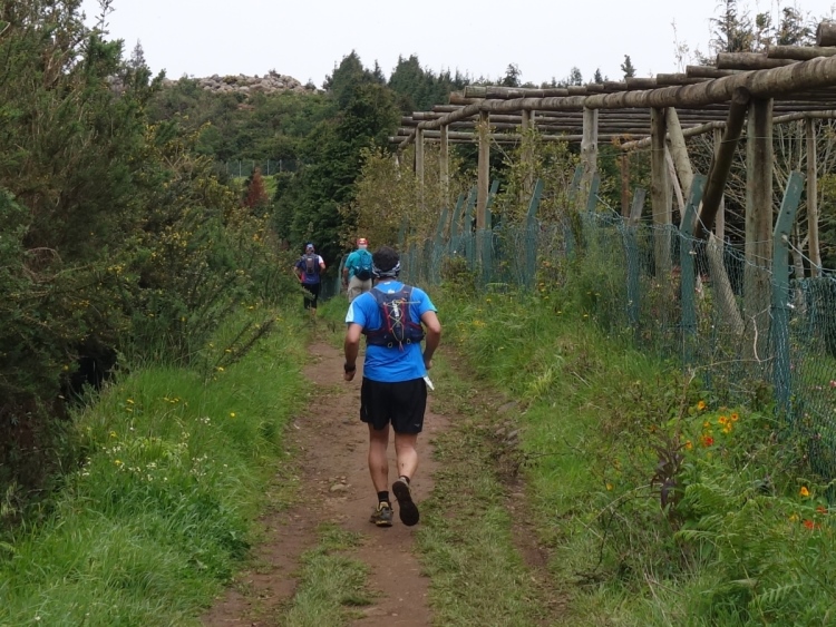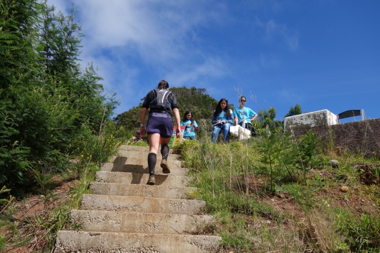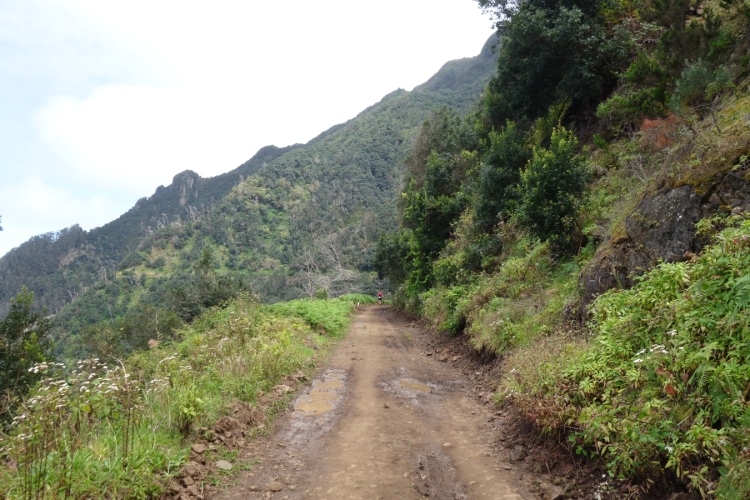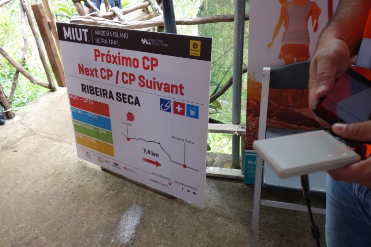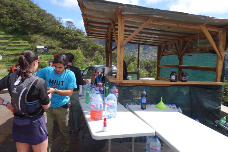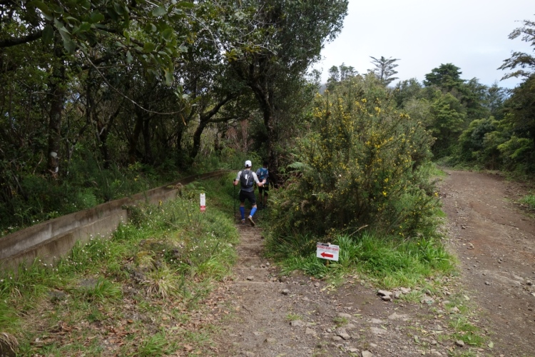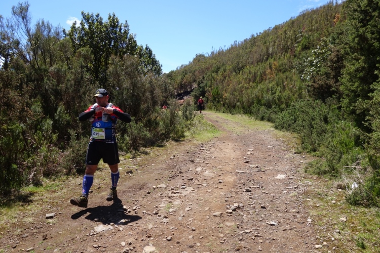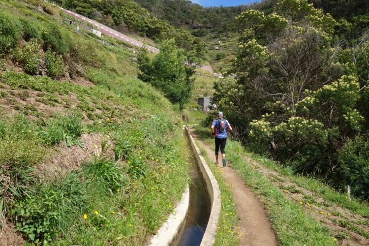 Kurz vor dem CP Ribeira Seica werden wir von der Levada zu meinem Schrecken geradewegs nach oben weggeführt. Aber die Passage und der Schrecken sind nur kurz. Am CP stoppe ich kurz zur Cola-Aufnahme und dann geht es auf einer Straße 200m hinunter und links der Straße entlang der Levada weiter.