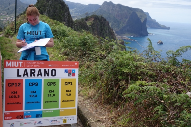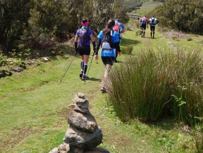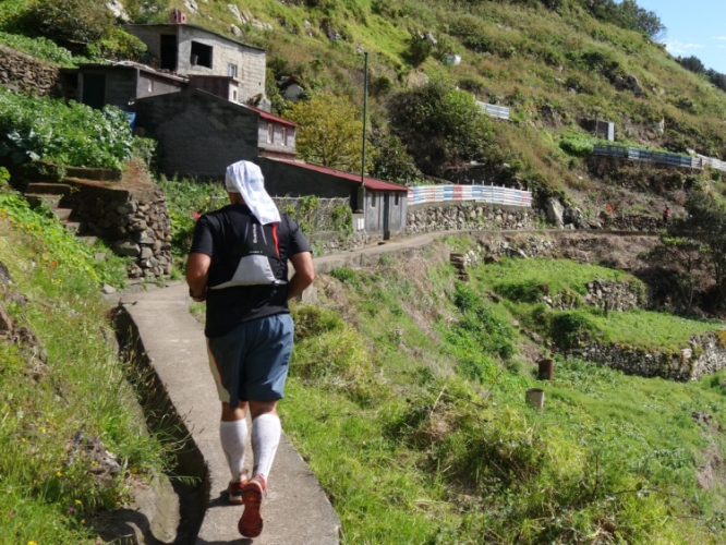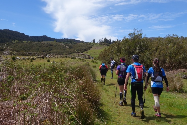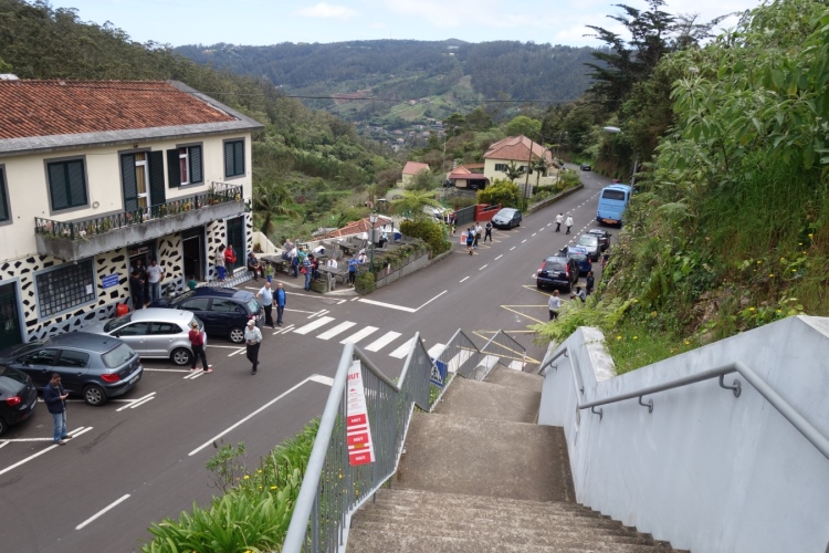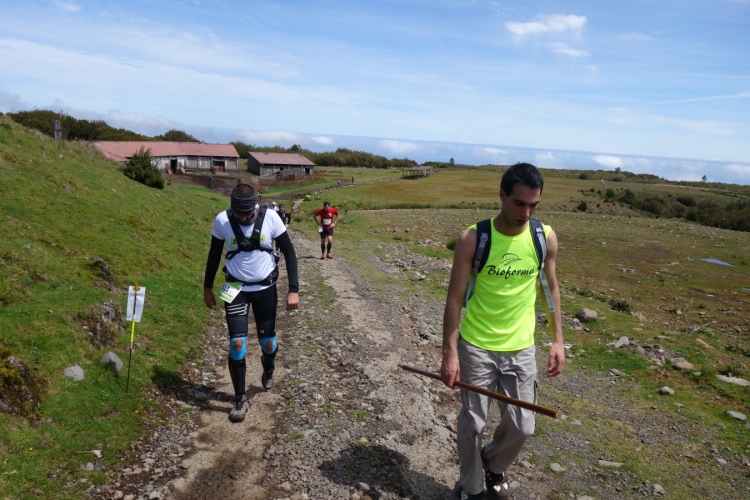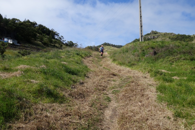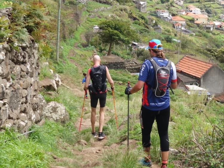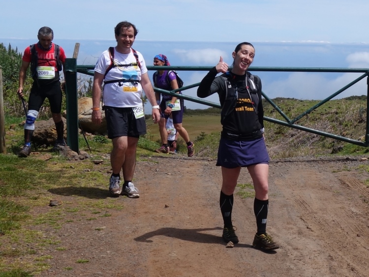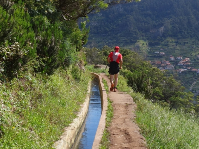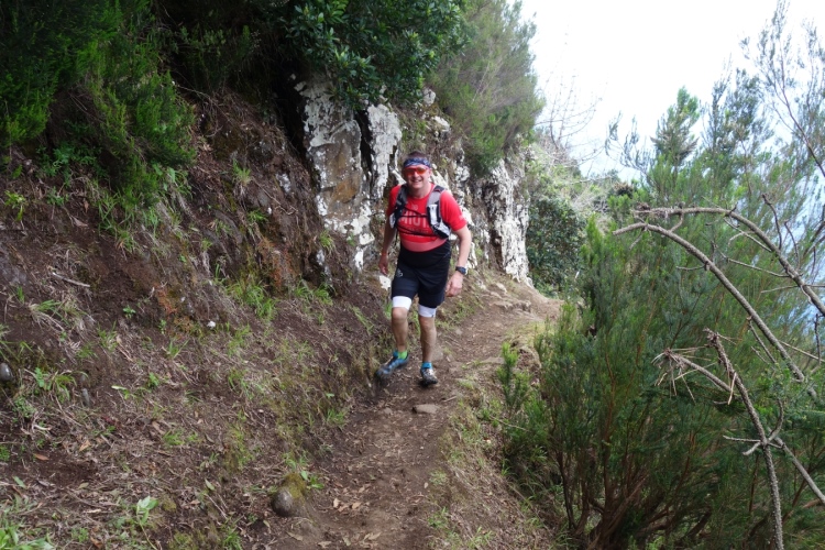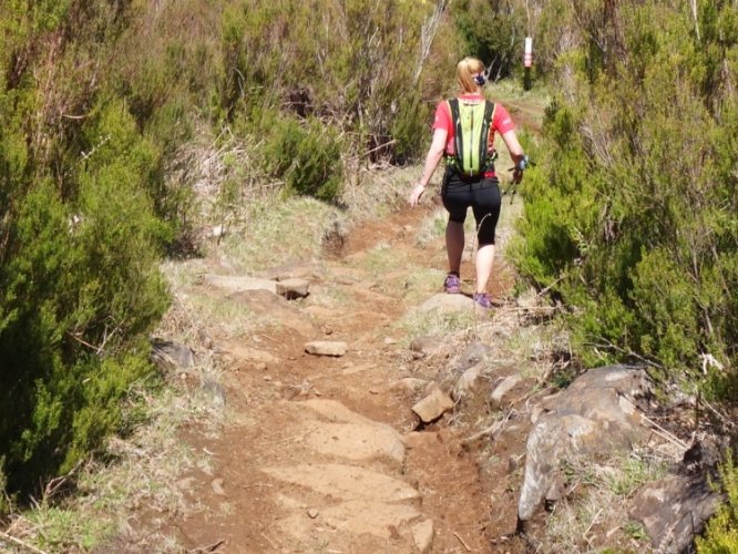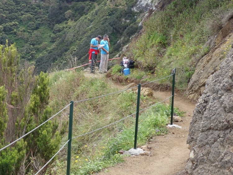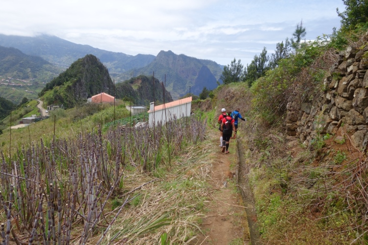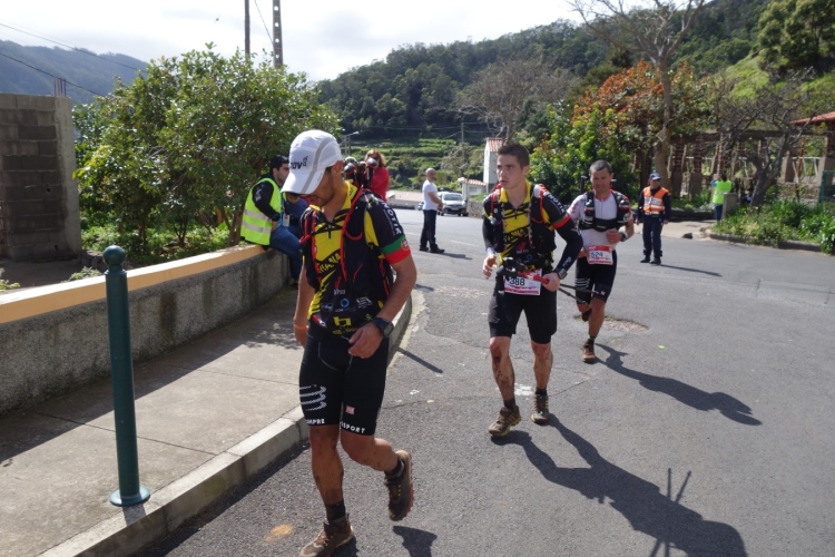 Kurz vor dem CP Ribeira Seica werden wir von der Levada zu meinem Schrecken geradewegs nach oben weggeführt. Aber die Passage und der Schrecken sind nur kurz. Am CP stoppe ich kurz zur Cola-Aufnahme und dann geht es auf einer Straße 200m hinunter und links der Straße entlang der Levada weiter.