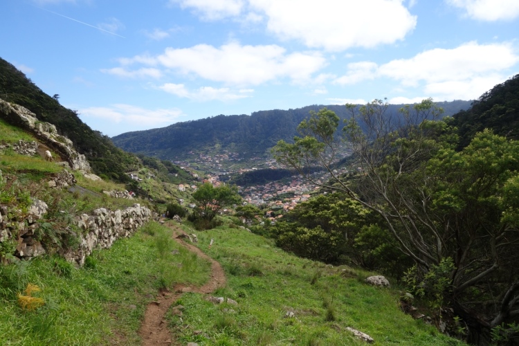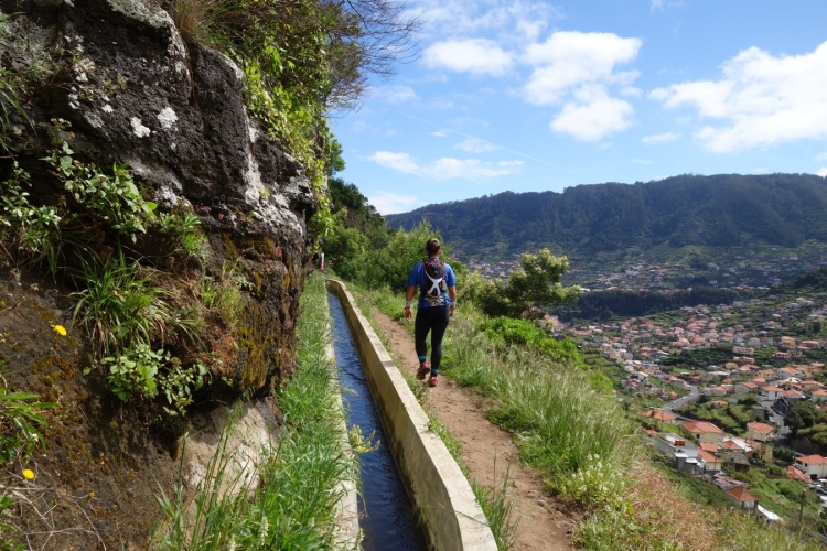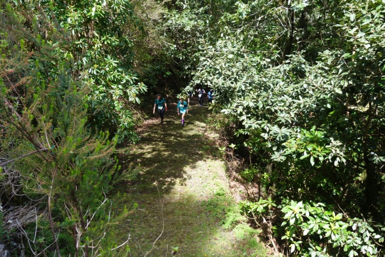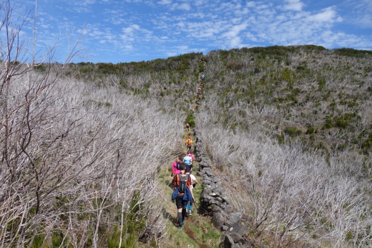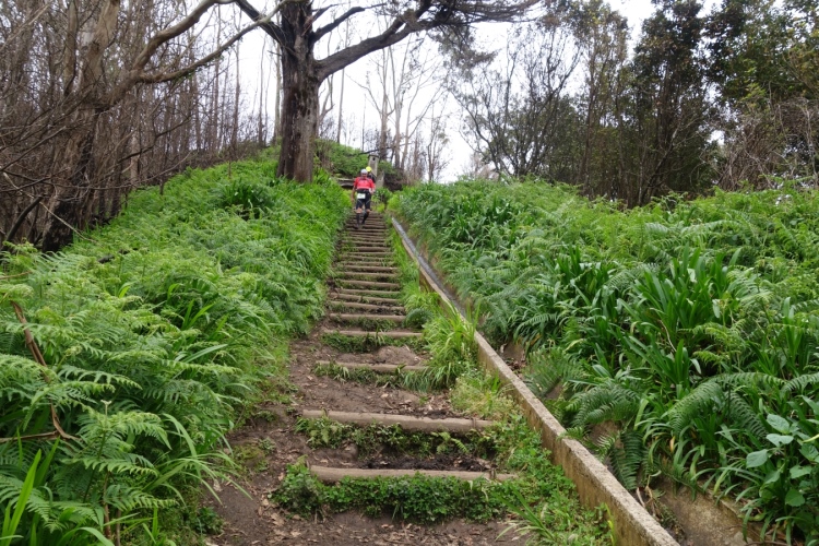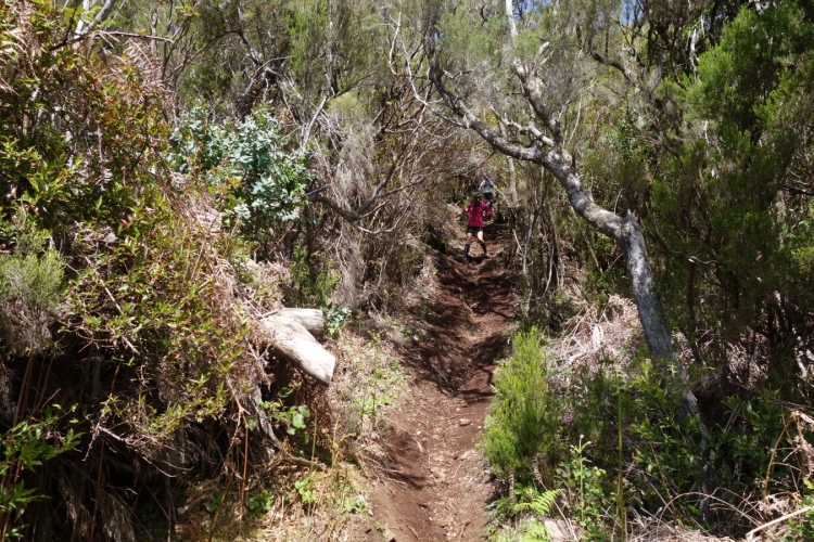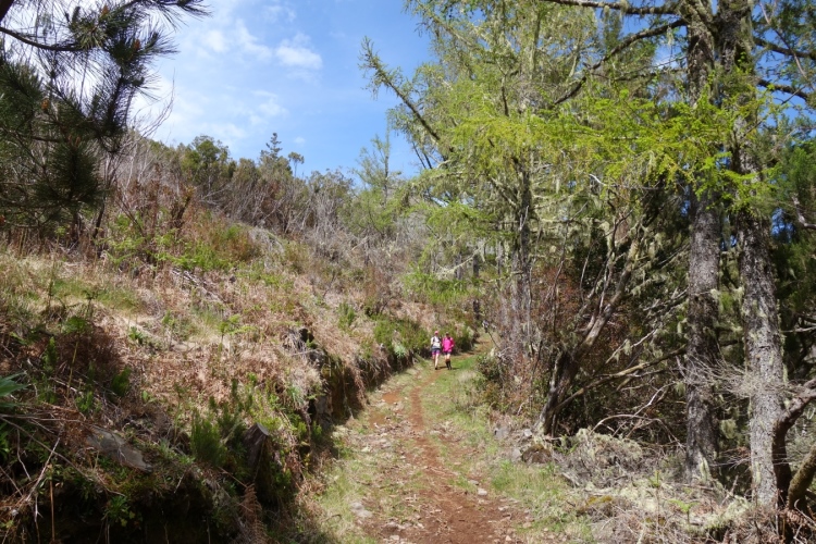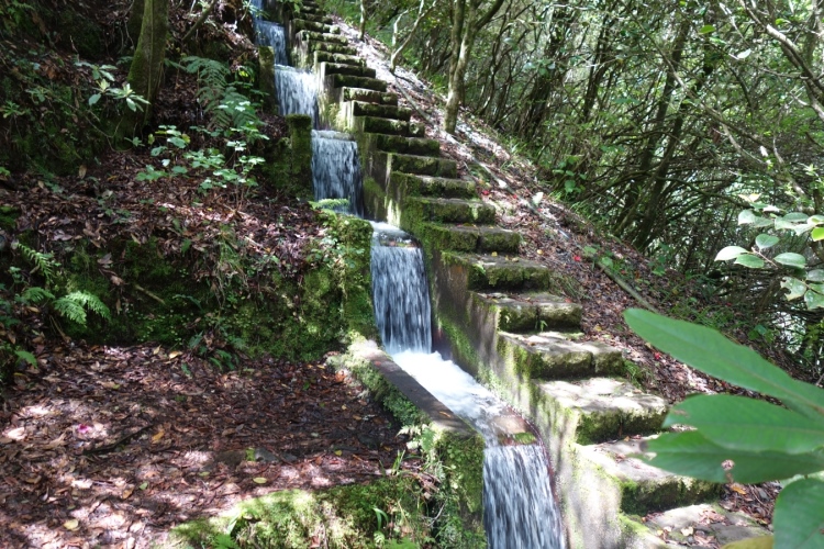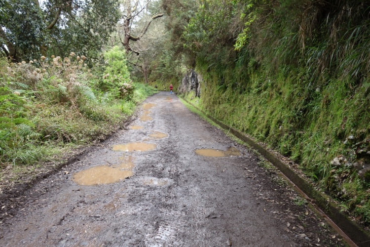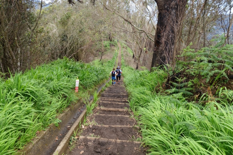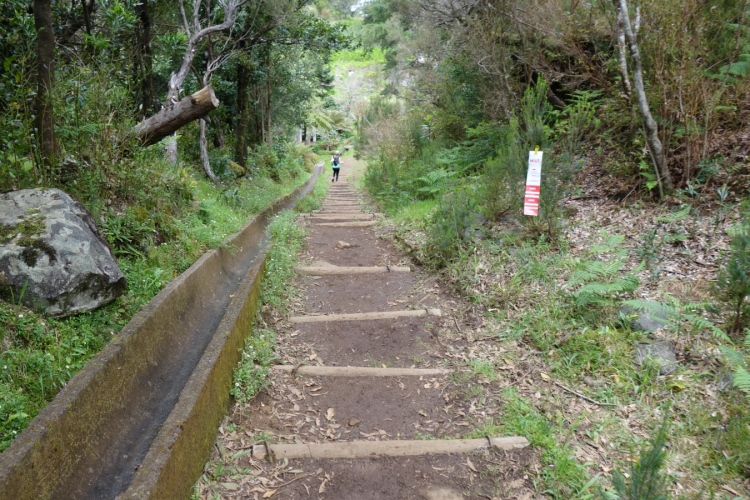 Dafür aber einen knackigen Aufstieg vor uns. Es geht auf typischen alten Wegen nach oben. Der Weg ist aus tausenden runden Steinen gemacht. Die Stufen sind aufwärts sehr angenehm, in der Gegenrichtung, wie ich aus Erfahrung weiß, aber nicht. Neben dem Weg führt eine steinerne Levadatreppe Wasser abwärts nach Ribeiro Frio.
