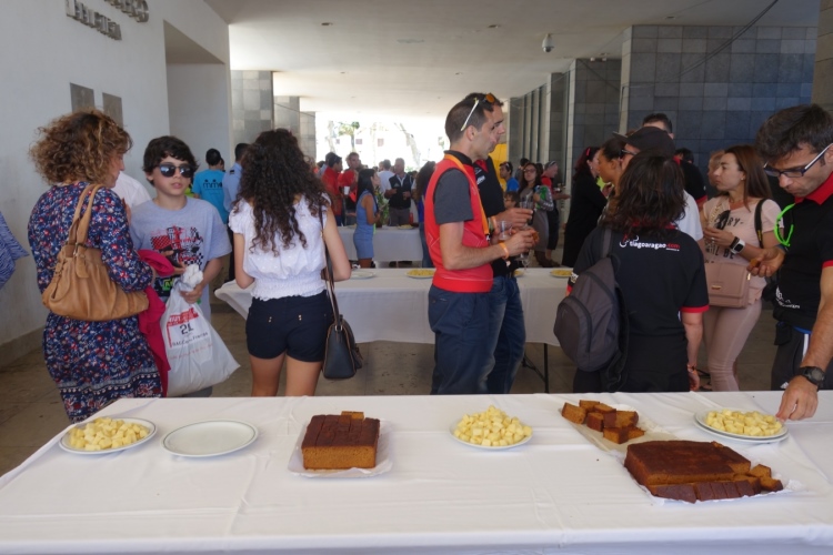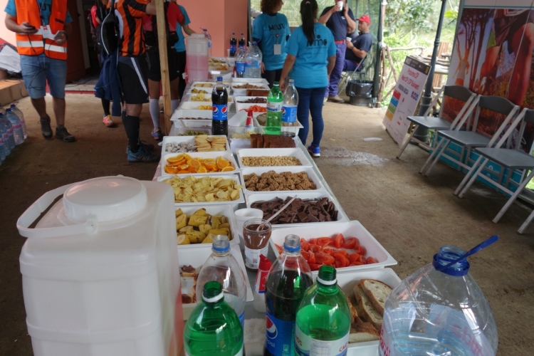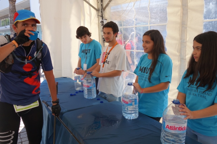 Jetzt aber ist Pause angesagt. Eine Treppenanlage müssen wir noch runter, noch einmal über die Straße und hinein ins Gebäude. Und schon ist die Labe vor uns. Alles, was das Herz begehrt. Ich greife jede Menge Feigen ab und will mir eine Suppe holen. Und wer serviert mir die Suppe? Es ist Rodrigo, Student der Touristik aus Funchal. Ihm hatte ich am Mittwoch bei der Startnummernausgabe gerne einen Fragebogen für eine Studienarbeit ausgefüllt. Man sieht sich immer zweimal.