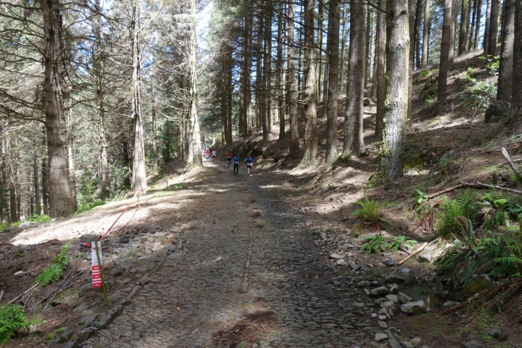 In Ribeiro Frio lasse ich die Restaurants zu beiden Seiten der Straße ebenso wie die Anlagen der Forellenzucht unbeachtet. Auch am CP laufe ich vorbei. Ich bin mit meinem Trinkrucksack als Selbstversorger unterwegs. Später werde ich mir Cola genehmigen, aber das ist mir noch zu früh. Wir haben ja erst gut 14 Km hinter uns.