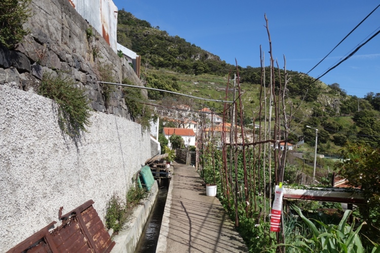 Da taucht Boca do Risco vor uns auf und hinunter geht es nach Ribeira Seica. Nach nicht allzu langer Abwärtspassage stoßen wir auf die Levada do Canical und folgen ihr nunmehr ohne Auf- und Ab, dafür aber wieder in voller Sonne. Ich tauche meine Kappe mehrfach in das Wasser der Levada, um mir Kühlung zu verschaffen.