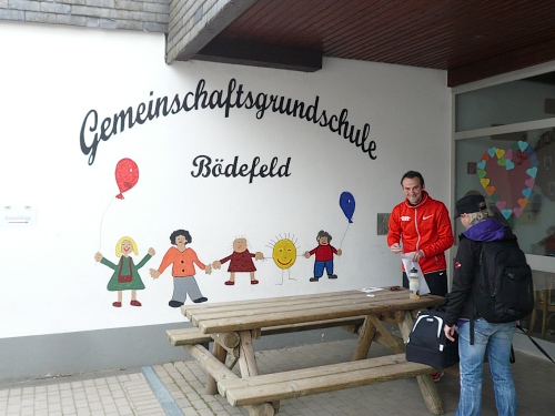 Start ist um 9 Uhr an der Schule. Das ganze Dorf hilft mit, sehr familiäre Stimmung. Der Lauf wird nach den DLV Richtlinien durchgeführt, ist ein richtiger Wettkampf. Zeitnahme mit Sport-Ident.chip, den man geschenkt bekommt. Entgegen meiner Vorsätze laufe ich heute eine „Unterdistanz“, nämlich die 42 km, aber mit happigen 1146 Höhenmetern!