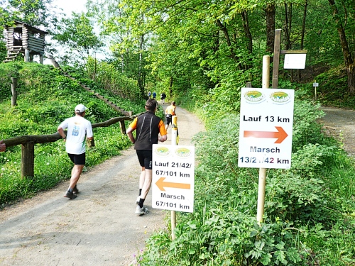 Es gibt noch eine 13km- und eine 21km-Strecke, die aber auch nicht zu unterschätzen sind. Es gibt kein Gedränge, die Startzeiten sind stark versetzt. Knapp 40 Läufer beim Marathon, knapp 50 bei den 67 km und knapp 70 bei den 101 km. Dazu die Marschierer und Wanderer, macht zusammen ca. 700 Sportler. Die Website ist einmalig und erklärt jede Disziplin detailliert.
