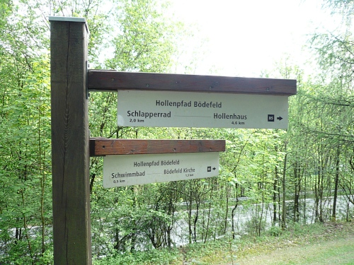 In Bödefeld ist das Anbohren der Unterwelt nicht notwendig, die Eingänge sind sichtbar. Der Legende nach hielten die Wesen der Unterwelt, die Hollen, freundlichen Kontakt vor allem zu Kindern. Berichte dieser Art gibt es viele in Deutschland (siehe mein Bericht vom Schlaubetalmarathon). Vermutlich handelt es sich bei den kleinen, freundlichen Wesen, die im Verborgenen lebten, um Reste slawischen Bevölkerungsgruppen.