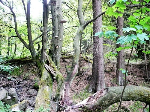 Steil geht es hinunter ins Sorpetal. Der Sachenkönig Widukind hat der Sage nach - nee, Leute, jetzt wird es heftig! Es geht wieder hinauf auf die Hunau. Aber mal sowas von steil! Wenn da nicht zwei Wanderer hinter mir gewesen wären .... So habe ich mich zusammengerissen und bin doch da hoch.