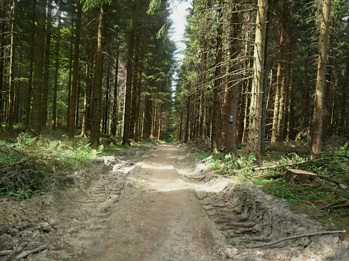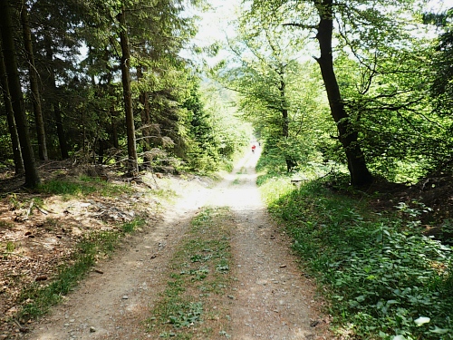 Dann verlässt die Marathonstecke in einem großen Bogen die Ultra-Strecke. Es wird einsam, sehr einsam im Hochwald.