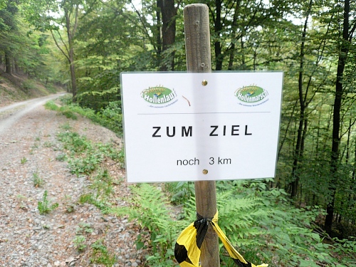 Dann sehe ich wieder ein paar holde Hollen, mache ein paar Fotos (soviel Zeit muss sein, der Leser will ja informiert sein), einen guten Eindruck und düse ins Ziel. Naja, der Hansi sitzt schon im Auto, der hat mal wieder irgendwie gewonnen und ich mache eine Pause in der Düserei, weil wir haben ja noch soviel zu besprechen. Die schwarze Hand hat er aber nicht gesehen. Dann mache ich mich gemütlich die Steigung hinauf zum Ziel.