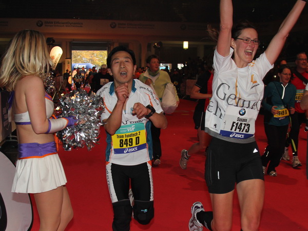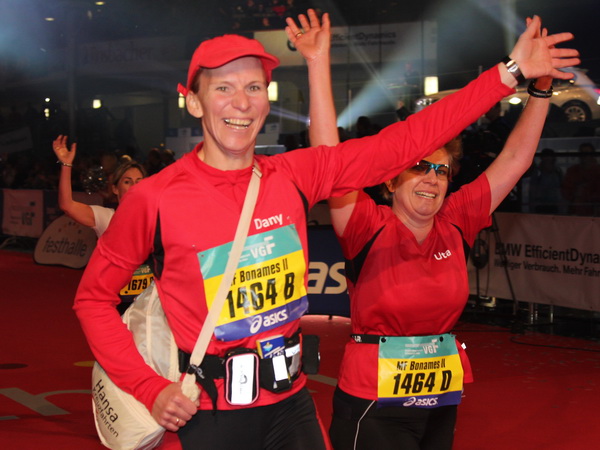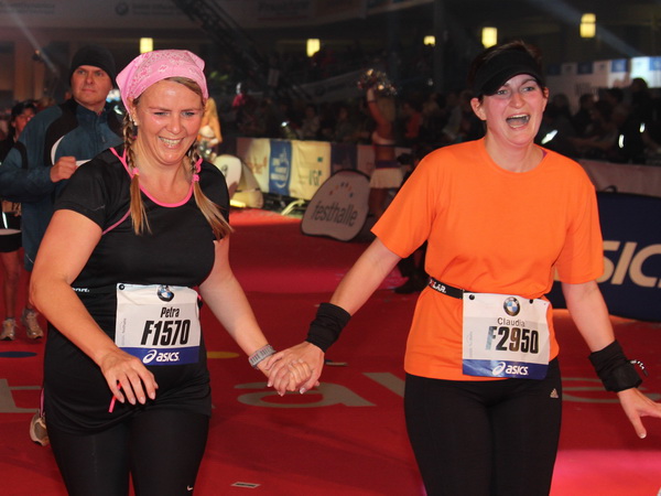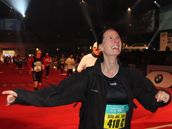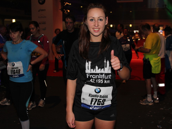 In Folie gepackt wird der zu recht viel gelobte Versorgungsbereich erreicht. Zuvor gibt es die wohlverdiente Medaille. Gut, dass die Wege in Frankfurt kurz sind. Gleich ist man in der Messehalle, nimmt sein Gepäck in Empfang und schon steht man unter der warmen Dusche.
