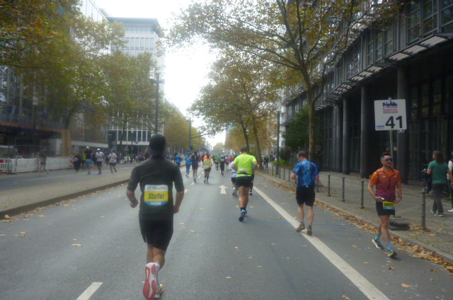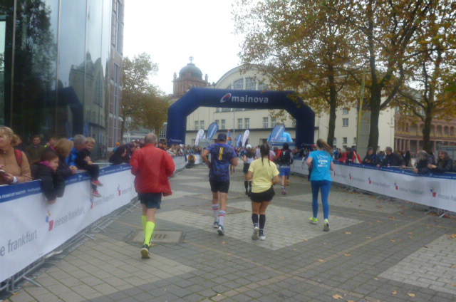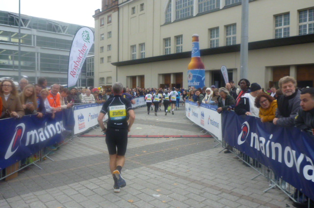 Und doch ziehen die sich, die Blicke auf die Uhr ob der Restkilometer häufen sich. Nochmal Hauptwache, Spendentor, Zeil, Eschenheimer Turm, dann verheißt das 40 km-Schild die nahende Erlösung. Nein, das ist übertrieben, den nahenden, tollen, so ganz besonderen Zieleinlauf.