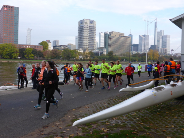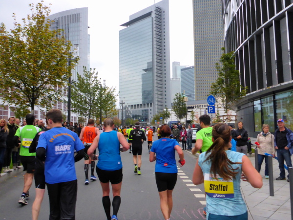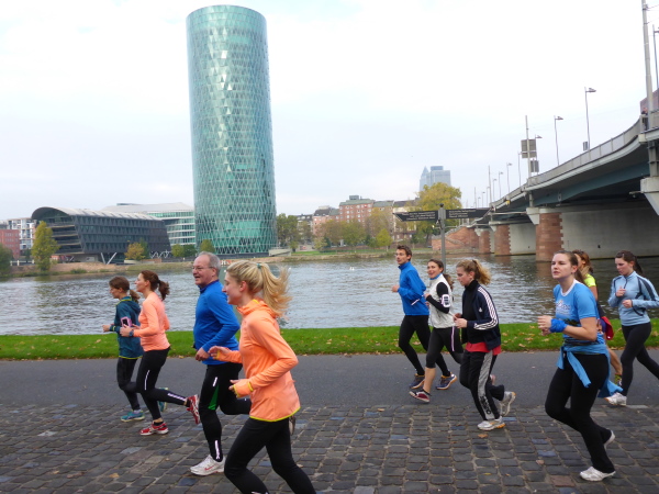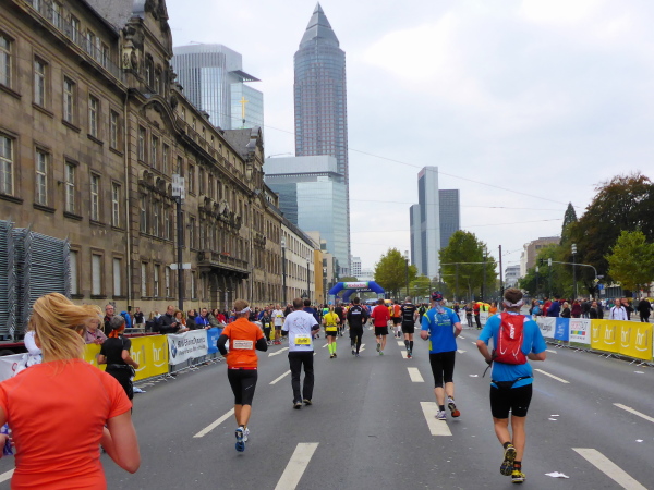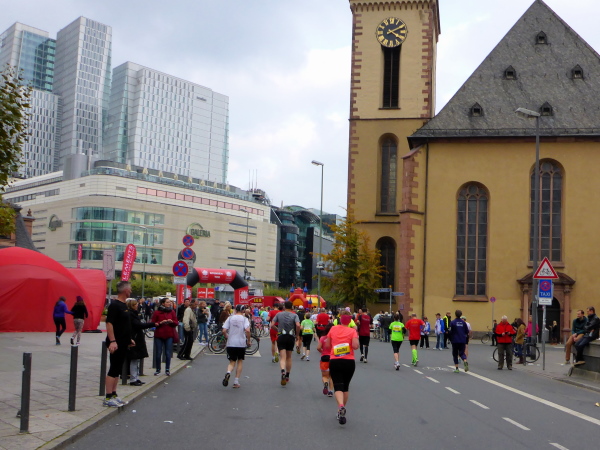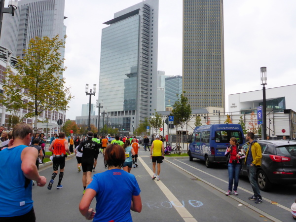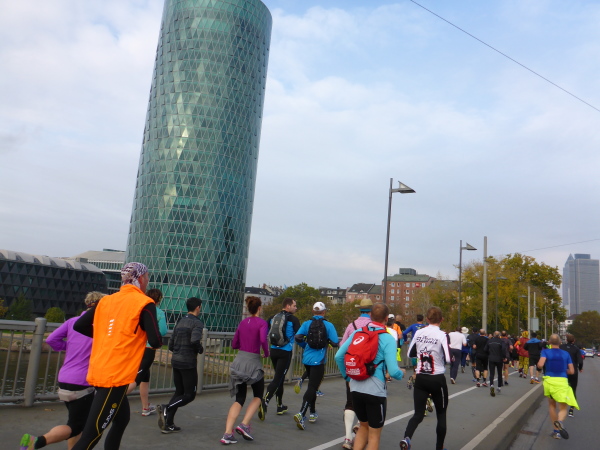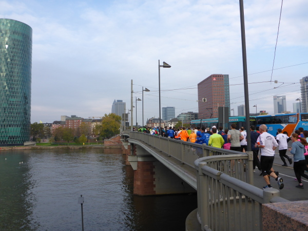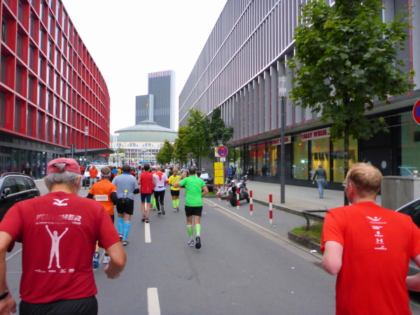 Klasse! Runter auf die alte Strecke zur Mainzer Landstrasse, direkt auf den Platz der Republik. Sensationell! Vielleicht gibt es bald eine Streckenführung zum Ostend, zum absolut sehenswerten EZB Tower oberhalb der alten Großmarkthallen. Ich bin in Hochstimmung. Möchte nur noch laufen! Es ist so schön!