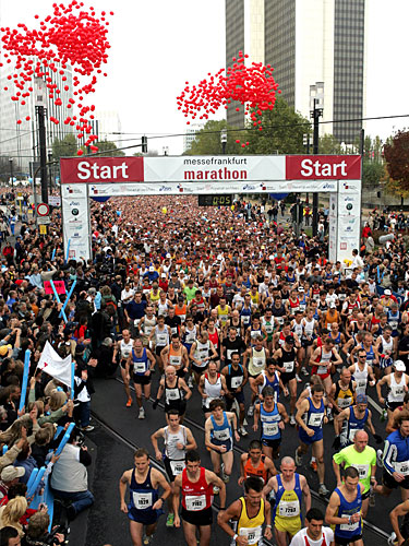 Mit insgesamt 17.110 Startern eine Rekordzahl, super-geniales Wetter, klasse Stimmung und eine totale Gänsehaut-Atmosphäre beim Zieleinlauf (schon allein deshalb lohnt es sich !!!) - das ist vorab meine Bilanz des diesjährigen Frankfurt-Marathons.