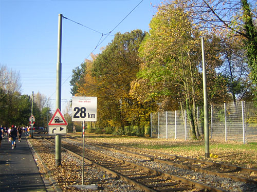 Abfahrt ist am Sonntag schon um 5.50 Uhr in Langenalb, um den ICE in Karlsruhe zu kriegen. Da ich am Abend vorher doch wieder ungewollt lange auf Schwester Susanns Geburtstag versumpft bin, kommt mir die geschenkte Stunde durch die Zeitumstellung ganz gelegen. Trotzdem bin ich noch ziemlich müde und kann mir im Moment nur schwer vorstellen, heute noch einen Marathon zu rennen!